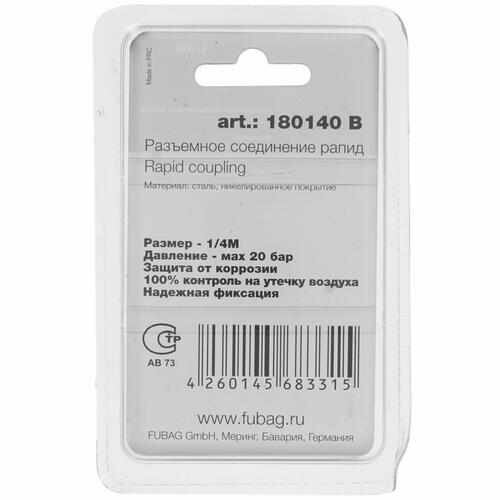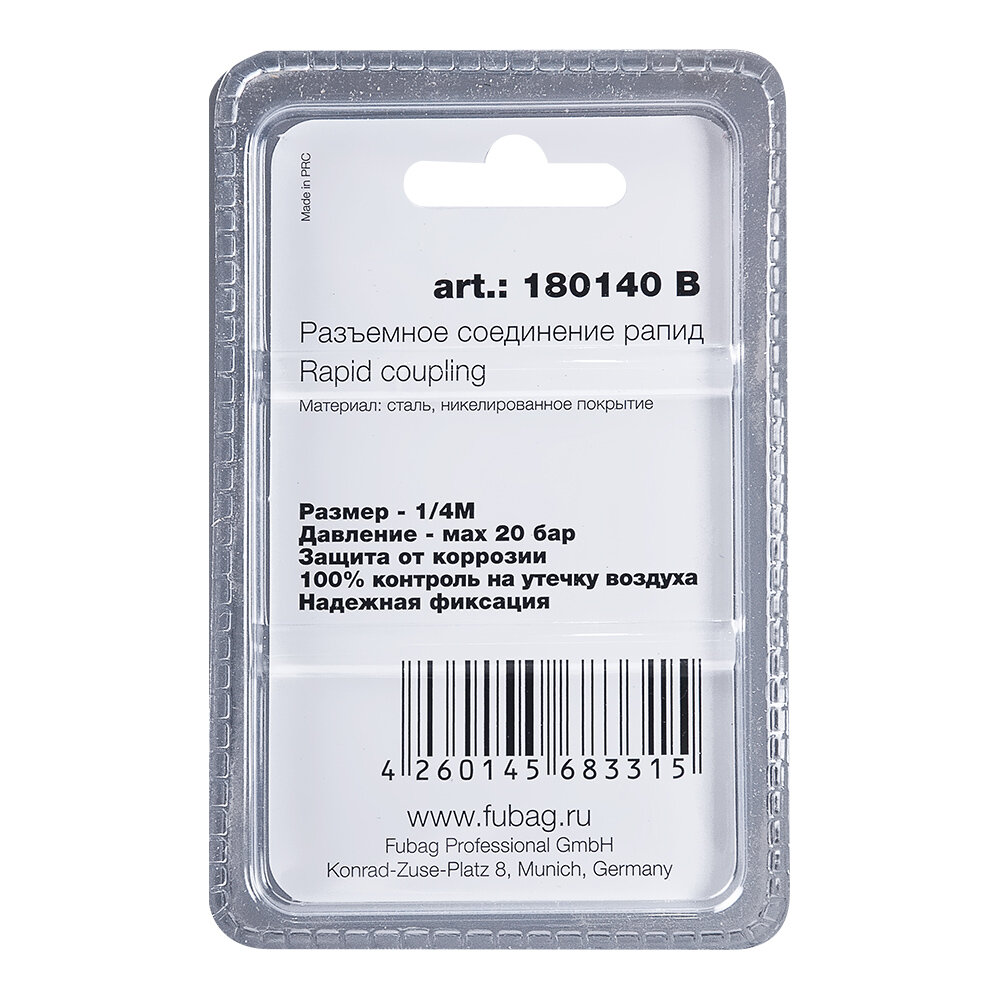 Разъемное соединение для подключения компрессора к пневмоинструменту. Переход с с резьбы наружной 1/4" папа на быстросъемное соединение рапид. Поставляется в блистере.