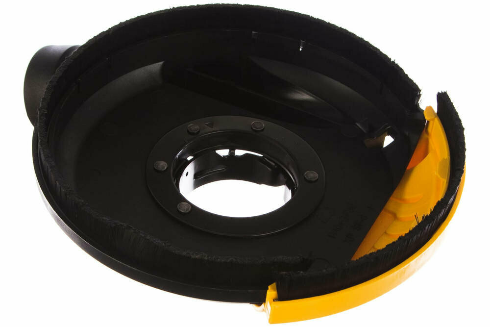 DeWALT DWE46150 - защитный кожух для угловой шлифовальной машины с диаметром диска 115 мм или 125 мм. Данная модель крепится к инструменту при помощи бесключевого зажима. Кожух в форме полукруга защищает оператора от различных частиц и осколков в случае разрушения диска. Для подключения шланга системы пылеудаления есть коннектор (DeWALT AirLock).