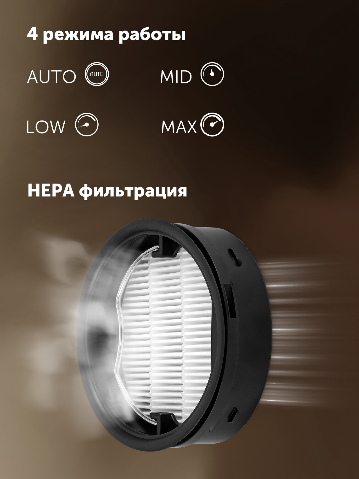 Устройство оснащено аккумулятором емкостью 3950 мАч, что обеспечивает до 85 минут автономной работы на одном заряде. Ручной пылесос с мощностью мотора в 800 Вт и мощностью всасывания в рекордные 280 аВт эффективно удаляет пыль, волосы, шерсть животных и другой мусор с различных покрытий, включая ковры, паркет, плитку и ламинат. Для разных типов загрязнений предусмотрены четыре режима мощности: эко, авто, макс и турбо. Мощный аппарат предназначен для сухой и влажной уборки.