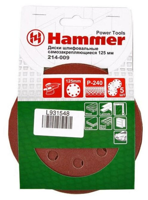 Круг шлиф. самосцепляющийся HAMMER 125мм P240 8отв.Круг шлиф. самосцепляющийся Hammer 214-009 Д125мм P240 8отв. цена за упаковку 5штВ блистере Техническая тканевая основа: - высокая прочность, гибкость и износостойкость;- водостойкая пропитка;- низкое растяжение основы при работе;- грунтование – нанесения покрытия на нерабочую обратную сторону. Связующий состав: - искусственная смола, обладающая повышенной износоустойчивостью;- оптимальное отведение тепла от зерна в процессе работы;- оптимально подобраны характеристики эластичности и жесткости. Шлифовальный (абразивный) материал: - синтетический материал оксид алюминия (электрокорунд Al2O3) - высокая твердость, стойкость (прочность) и острые края зерна;- самозатачивание зерна в процессе шлифования;- синтетическое покрытие зерна увеличивает срок службы и усиливает шлифовальные свойства (стойкость к разрушению зерна).