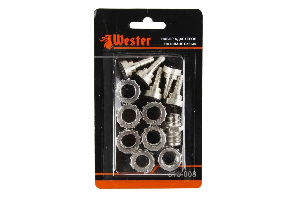 Адаптеры Wester поставляются набором из 13 предметов, в котором представлены 5 переходников-байонетов на елочку (6 мм), один переходник с 1/4' на 1/4', 7 колец для байонетного соединения. Такие адаптеры совместимы со шлангами диаметром 6 мм, используемыми с пневматическим оборудованием. Металлические адаптеры комплекта Wester являются никелированными и отличаются повышенной стойкостью к коррозии, высоким рабочим ресурсом благодаря этому покрытию. Все вошедшие в комплект изделия помещены в прозрачный блистер. Технические характеристики адаптеров Wester 55271Виднабор фитинговПосадочный размер 6 мм
