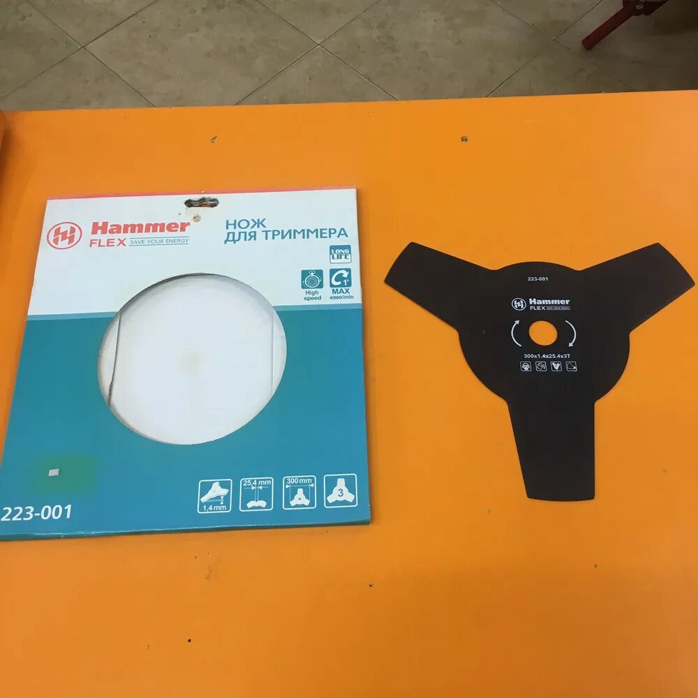 | Название на английском | Trimmer Blade Hammer Flex 223-001 hardened steel, 3 teeth, thikness 1,4 мм, d=300 мм |