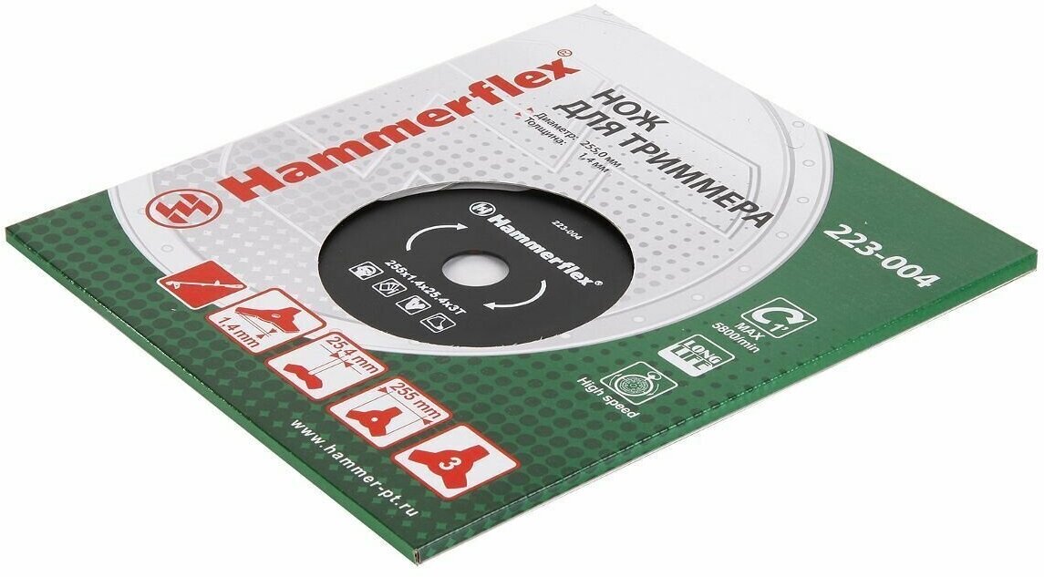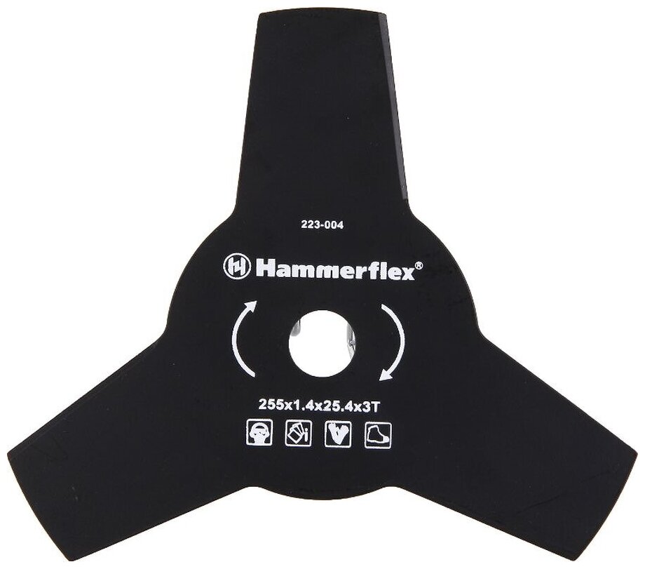 | Название на английском | Trimmer Blade Hammer Flex 223-004 hardened steel, 3 teeth, thikness 1,4 мм, d=255 мм |