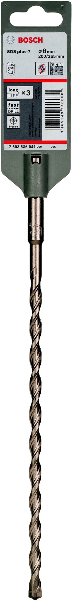 Бур Bosch SDS plus-7 имеет оптимально адаптированный к вибрациям дизайн спирали для эффективной передачи приводного усилия и максимальной скорости сверления. Пока индикатор износа заметен на сверле, диаметр отверстия все еще находится в пределах допуска для установки дюбеля. Режущие кромки специальной формы гарантируют максимальную эффективность при засверливании, исключительно долгий срок службы и минимальный износ.