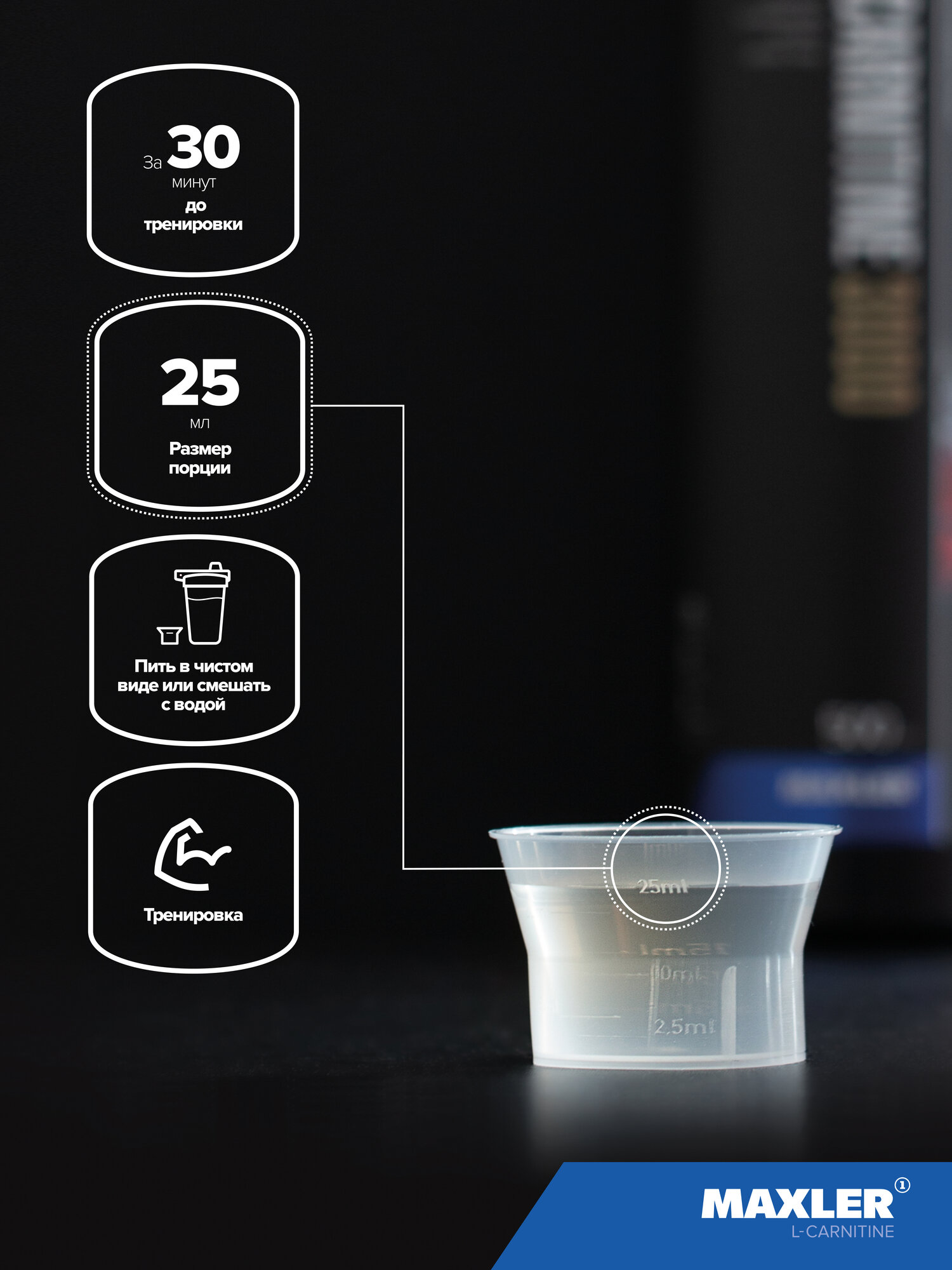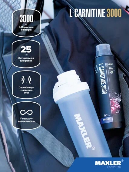 Maxler L-Carnitine 3000 – это сверхконцентрированная добавка на основе L-карнитина. Каждая порция содержит 3000 мг L-карнитина, благодаря чему L-Carnitine 3000 прекрасно справится с задачей сжигания лишнего жира и повышения производительности на тренировках.L-карнитин – аминокислота, синтезируемая в организме человека, родственная витаминам группы В. L-карнитин способствует преобразованию энергии из свободных жирных кислот, снижает усталость, улучшает обмен веществ, снижает избыточную массу тела, а также повышает иммунитет, нормализует сердечно-сосудистую деятельность, успокаивает нервную систему, дает чувство бодрости и хорошее настроение. Максимальное жиросжигающее действие L-карнитина проявляется в сочетании с интенсивными спортивными тренировками – занятиями аэробикой и фитнесом.Рекомендации по применению: принимать по 25 мл (1 порция) в чистом виде или разбавить водой. Не рекомендуется принимать позднее 18 часов во избежание трудностей с засыпанием.