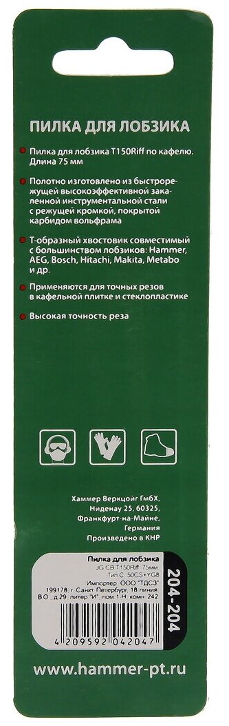 | Наименование модели | пилка по другим материалам для лобзика HAMMER 62759 |