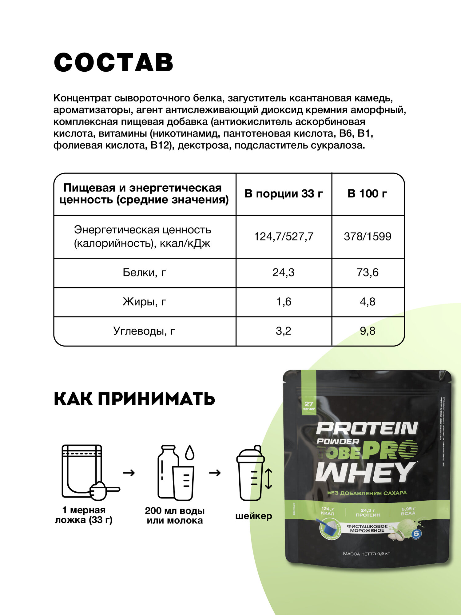 Как приумножить пользу от занятий спортом? Спортивное питание — залог успеха в работе над своим телом! Протеин с коллагеном на основе концентрата сывороточного белка поможет восстановиться после активной тренировки в зале и полезно перекусить в течение дня. Протеин для набора массы, похудения и сушки тела подходит для мужчин и женщин. Сывороточный протеин «TOBEPRO» – это: ✔ собственное производство и использование концентрата сывороточного белка (КСБ) высокого качества. ✔ 4 вкуса на выбор – «Ирландский крем», «Кофе капучино», «Клубника-банан» и «Соленая карамель». ✔ комплекс из 6 витаминов — В6, В1, фолиевая кислота, В12, никотинамид, пантотеновая кислота. Оптимальное содержание этих веществ в одной порции готового напитка гарантирует благоприятное воздействие на рост волос, их силу и блеск, улучшение памяти и концентрации, поддержание здоровья сердечно-сосудистой и нервной систем. ✔ высокое содержание белка. 77,3 г белка в 100 г смеси. ✔ гидролизованный коллаген. 3 г в 1 порции сохранят молодость и красоту вашей кожи, ногтей, волос и соединительных тканей в организме. ✔ сбалансированное питание без сахара, улучшенное пищеварение и поддержание физической формы. Протеин сывороточный «Клубника-банан» придаёт напитку восхитительный ягодно-фруктовый профиль с нежным банановым послевкусием. Продукт представлен в виде сухой смеси для создания вкусного молочного напитка: смешайте 30 г смеси (1 мерная ложка) с 200 мл молока и перемешайте содержимое в шейкере.