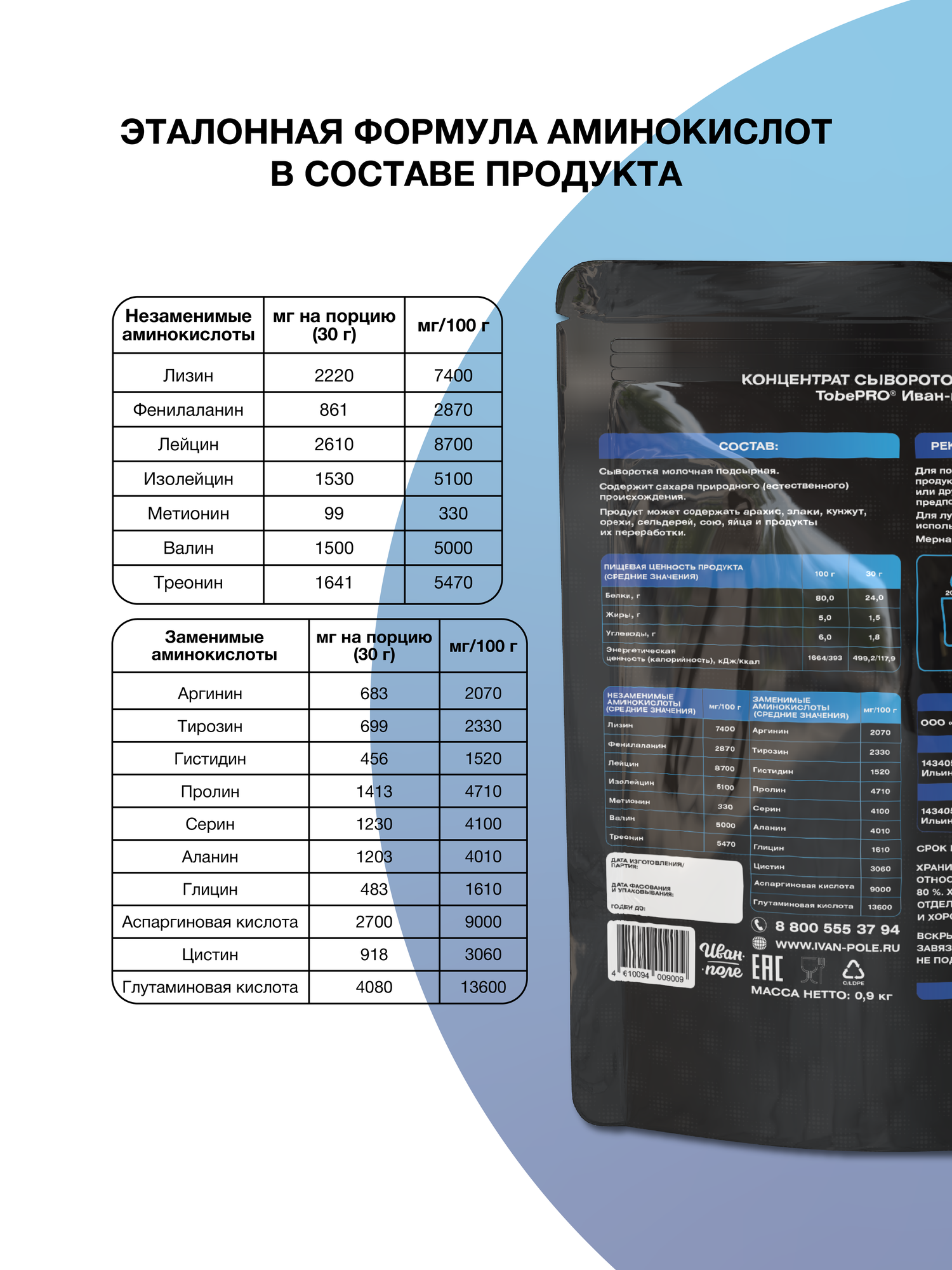 Как приумножить пользу от занятий спортом? Спортивное питание — залог успеха в работе над своим телом! Протеин с коллагеном на основе концентрата сывороточного белка поможет восстановиться после активной тренировки в зале и полезно перекусить в течение дня. Протеин для набора массы, похудения и сушки тела подходит для мужчин и женщин. Сывороточный протеин «TOBEPRO» – это: ✔ собственное производство и использование концентрата сывороточного белка (КСБ) высокого качества. ✔ 4 вкуса на выбор – «Ирландский крем», «Кофе капучино», «Клубника-банан» и «Соленая карамель». ✔ комплекс из 6 витаминов — В6, В1, фолиевая кислота, В12, никотинамид, пантотеновая кислота. Оптимальное содержание этих веществ в одной порции готового напитка гарантирует благоприятное воздействие на рост волос, их силу и блеск, улучшение памяти и концентрации, поддержание здоровья сердечно-сосудистой и нервной систем. ✔ высокое содержание белка. 75,7 г белка в 100 г смеси. ✔ гидролизованный коллаген. 3 г в 1 порции сохранят молодость и красоту вашей кожи, ногтей, волос и соединительных тканей в организме. ✔ сбалансированное питание без сахара, улучшенное пищеварение и поддержание физической формы. Протеин сывороточный «Кофе капучино» в готовом напитке раскрывается нежным кофейным вкусом. Продукт представлен в виде сухой смеси для создания вкусного молочного напитка: смешайте 30 г смеси (1 мерная ложка) с 200 мл молока и перемешайте содержимое в шейкере.