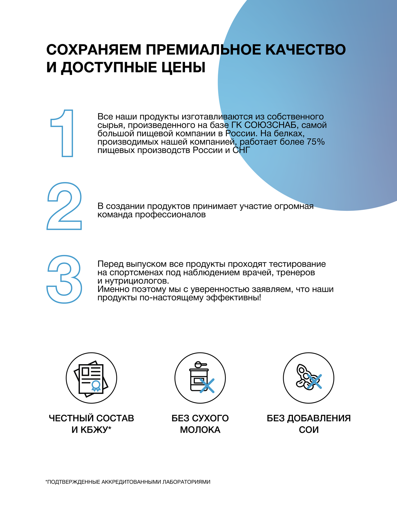 | Состав | Концентрат сывороточного белка, коллаген говяжий гидролизованный, краситель сахарный колер IV, загуститель ксантановая камедь, ароматизаторы, агент антислеживающий диоксид кремния аморфный, комплексная пищевая добавка (антиокислитель аскорбиновая кислота, витамины (никотинамид, пантотеновая кислота, В6, В1, фолиевая кислота, В12), декстроза), подсластитель сукралоза. Содержит сахара природного (естественного) происхождения. |