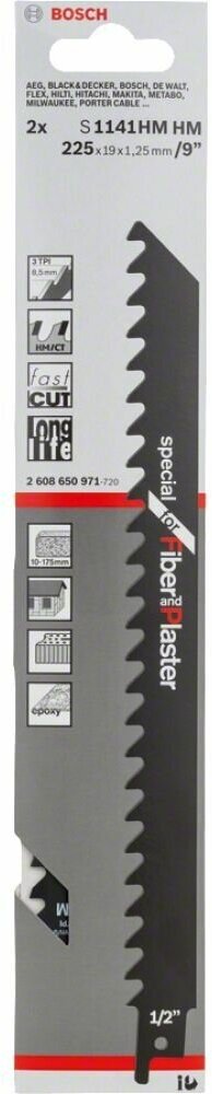Полотно пильное для сабельных пил Bosch S 1141 HM 2608650971 пилит пористый бетон, кирпич (красный), фиброцемент (