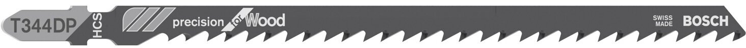 Лобзиковое пильное полотно T 344 DP Precision for Wood позволяет выполнять быстрые, точные прямые пропилы в древесине.