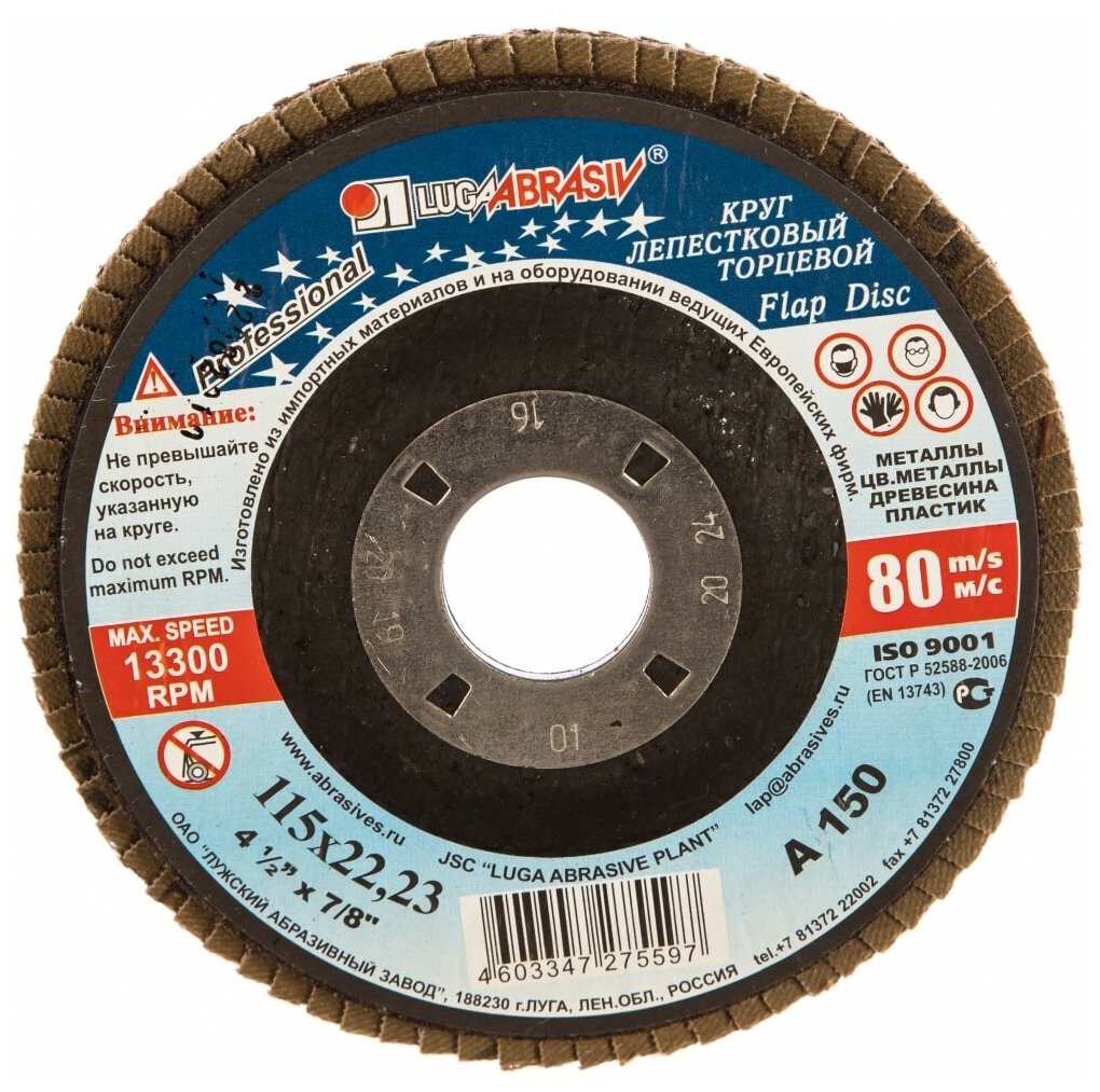 Круг Лепестковый Торцевой (КЛТ) ЛУГА-АБРАЗИВ КЛТ1 115 Х 22 Р150 (№10)