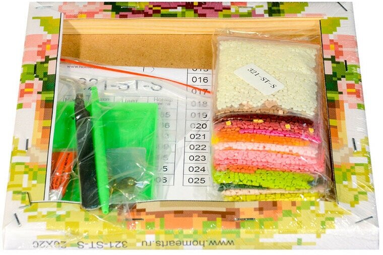 Алмазная мозаика Маленький цветник очень понравится юным любителям рукоделия. Правда, задача тут не самая простая - составить сложный рисунок из огромного количества крошечных элементов... Такая работа требует огромного терпения и усидчивости! Впрочем, в комплект входит пинцет, которым будет удобно цеплять элементы, а холст размечен заранее.