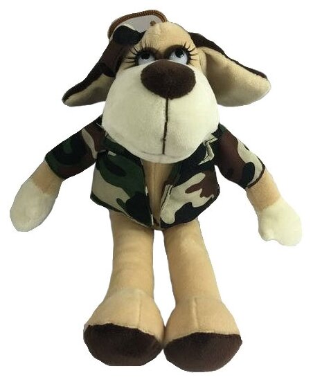 Игрушка Собака, одетая в камуфляжный костюм - это милая зверушка, которая понравится каждому ребенку. Такой забавный зверек изготовлен из приятной на ощупь ткани и мягкого наполнителя. Его можно стирать в стиральной машинке. Эта собачка станет для своего маленького обладателя верным другом, с которым не захочется расставаться.