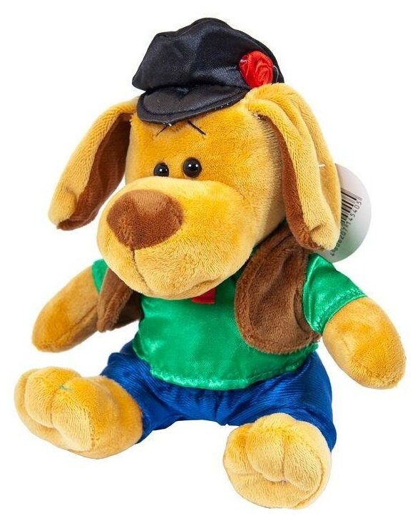 Мягкая игрушка Собака в кепке порадует всех своим внешним видом. Эта милая собачка станет другом малыша и героем многих игр, придуманных им. Одета собачка в симпатичную черную кепочку с розочкой на макушке, в зеленую кофту с коричневым жилетом и синие брючки. Изготовлена игрушка из качественного синтепона и искусственного меха.