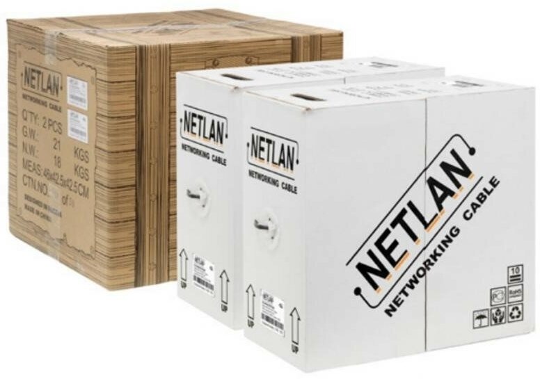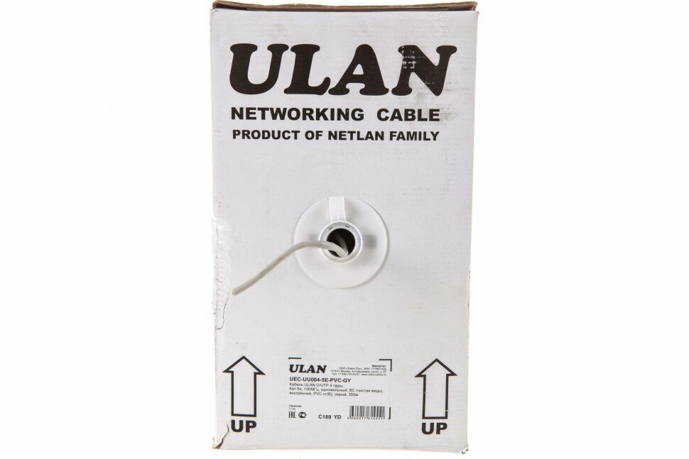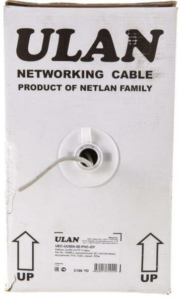 кабель витая пара Netlan U/UTP cat.5e 4pair PVC CU 0.45мм внутренний серый (305 м) UEC-UU004-5E-PVC-GY