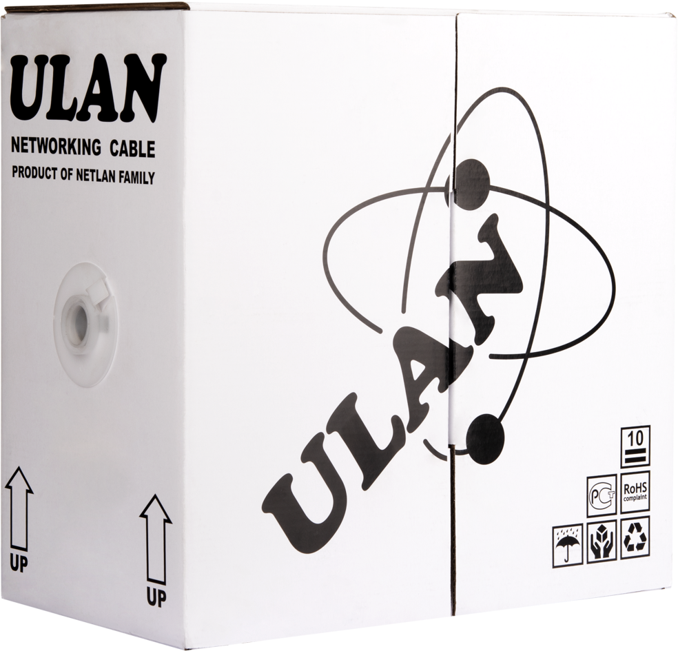 Поставляется в картонных коробках, по 305м. Для удобства транспортировки и лучшей сохранности, две коробки с кабелем дополнительно объединены в одну общую транспортную картонную коробку.