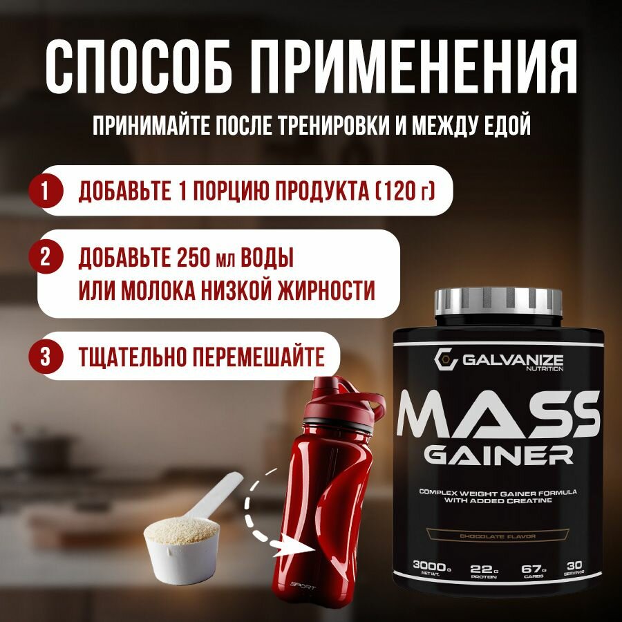 Гейнер Galvanize Nutrition G Mass 3 кг шоколад и лесной орех Бежевый (GN_SHCVPLBG4P-.) (размер: One size)