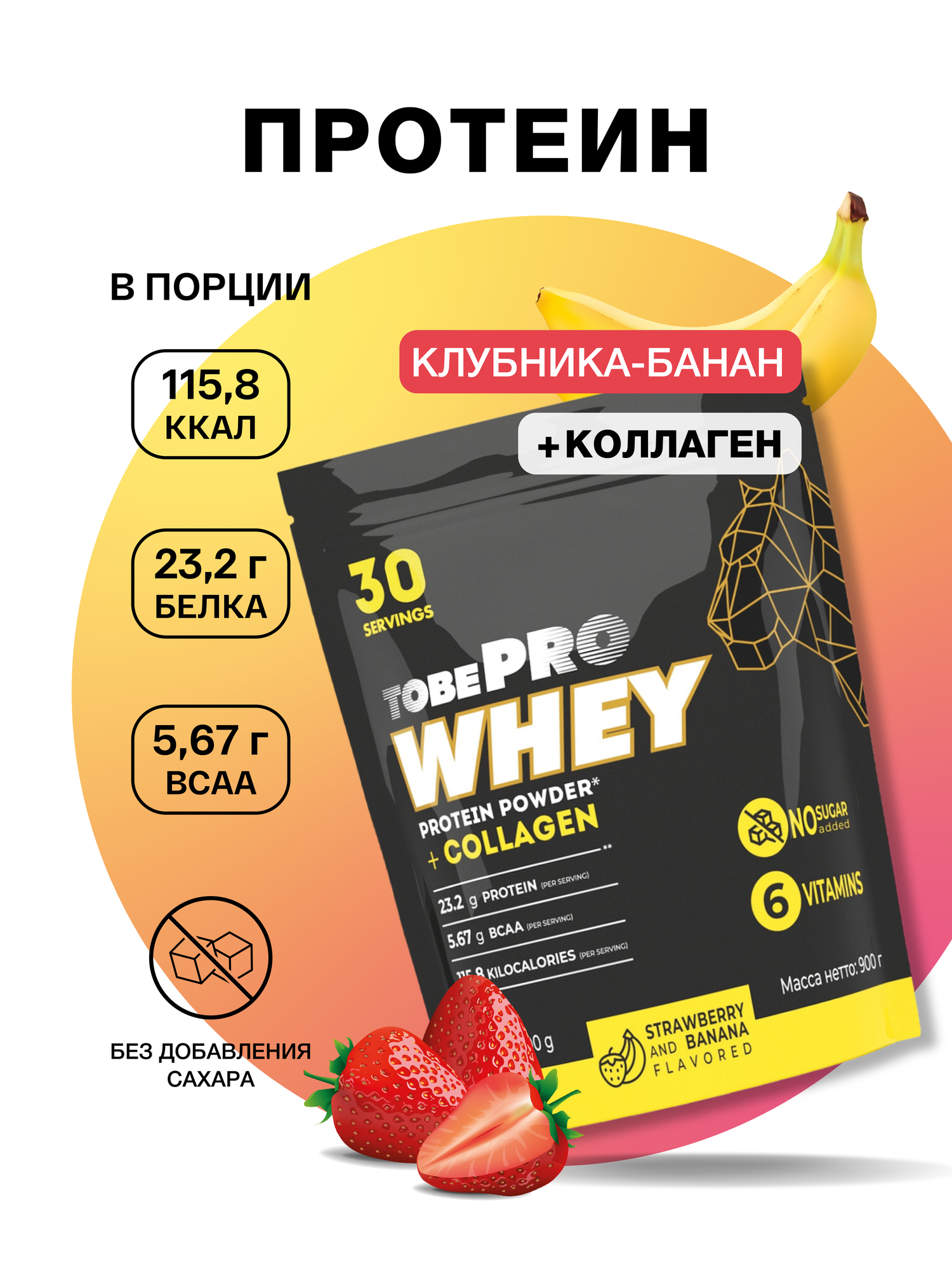Протеин сывороточный без сахара TobePRO Whey Protein с ВСАА Ваниль 900 г/30 порций Мультицвет Иван-поле (30162232WJHBI16-.)