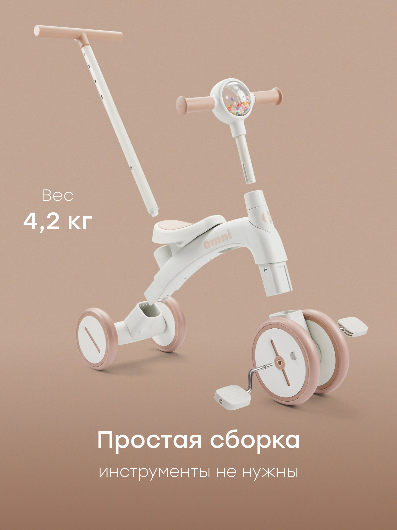 Беговел-трансформер детский OMNI Бежевый Happy Baby (50050KEQRH44-BEIGE) (размер: 85-115)