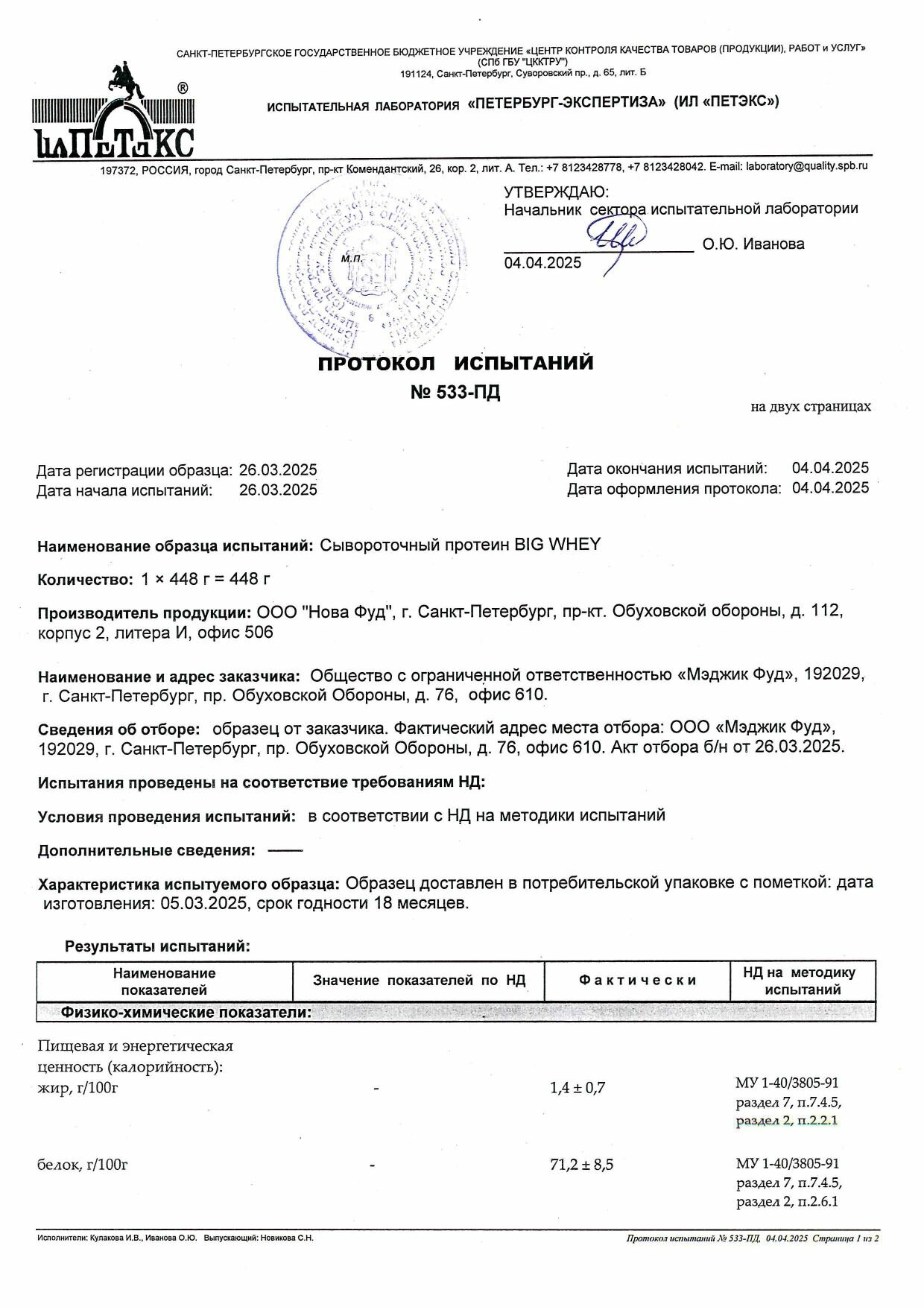 На сегодняшний день товар «Протеин BIGSNT BIG WHEY сывороточный для набора мышечной массы похудения и сушки / 900 грамм 28 порций Мороженое Мультицвет BIG SNT (PRO900YSJLB6T-ICE) (размер: Без размера)» можно купить с кешбеком в 2 магазинах: Яндекс.Маркет, Спортмастер