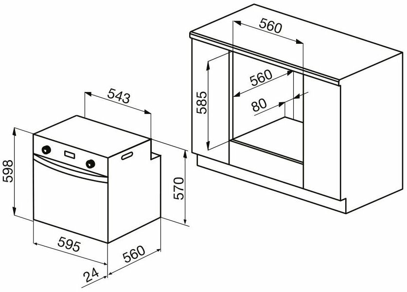 | Размеры (ШxГxВ) | 59.5 х 58 х 59.5 см; ниша 56 x 56 x 60 см |