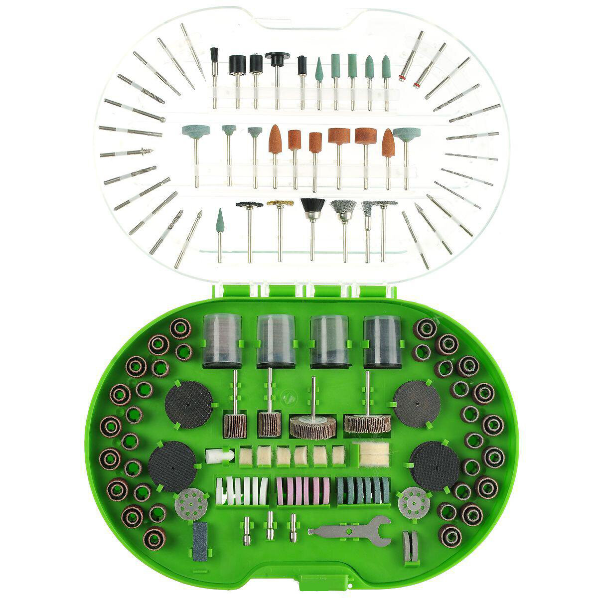 Набор насадок для гравировальной машины в чемоданчике - комплект аксессуаров, предназначенный для обработки различных материалов. В комплекте: трубки наждачные, круги войлочные, насадка войлочная, круги резиновые полировальные, круги шлифовальные лепестковые, круги шлифовальные абразивные, круги наждачные, шарошки резиновые полировальные, шарошки абразивные, шарошки алмазные, круги отрезные абразивные, круги отрезные алмазные, сверла по металлу (HSS), корщетки нейлоновые, корщетки стальные, патроны цанговые, паста полировальная, камень правильный и держатели для полировальных насадок и наждачных трубок.