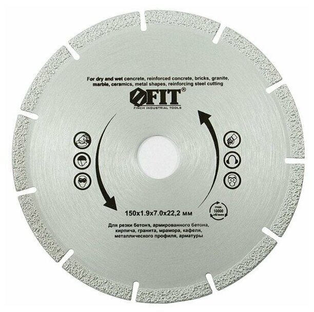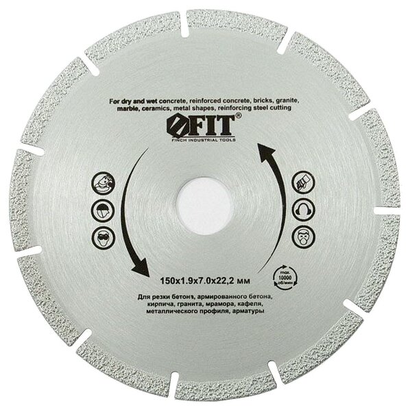 Алмазный диск FIT по камню, универсальный. Для особо прочных материалов. Диск изготовлен из высококачественной углеродной стали с высокой концентрацией алмазов в рабочей поверхности, на сверхточном оборудовании.