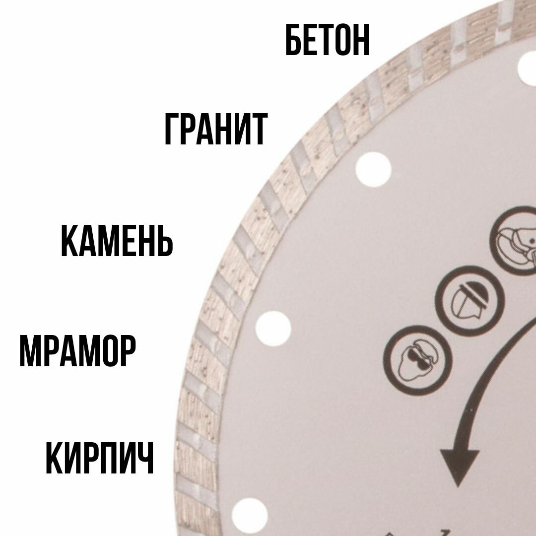 - Применяется для резки бетона, кирпича, гранита, мрамора и камня