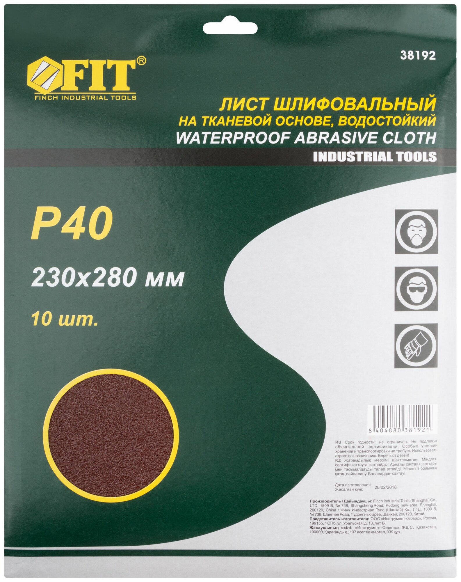 Лист шлифовальный Fit 38192
