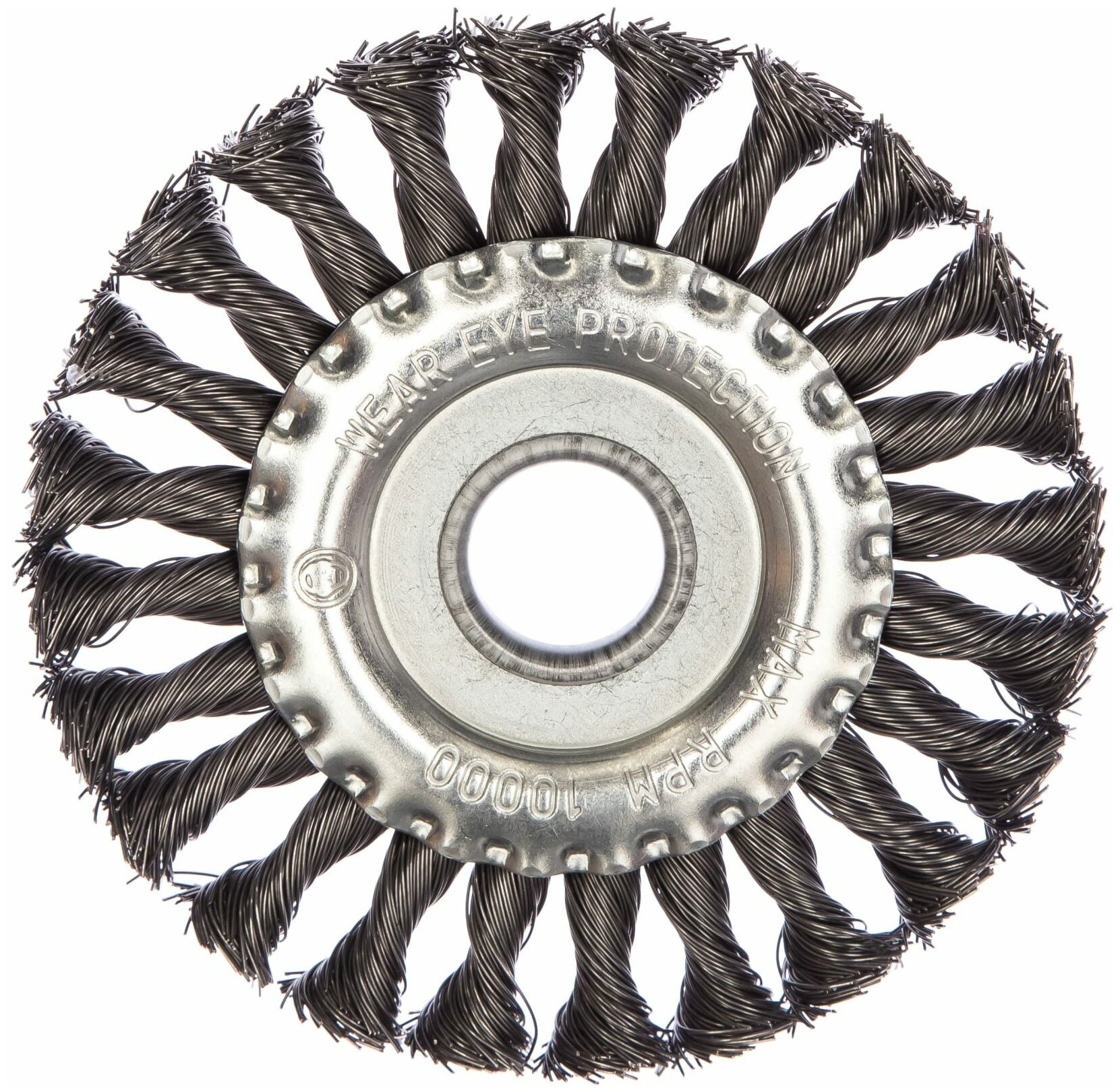 Тип «колесо». Для шлифовальных и отрезных машин. Витая стальная проволока. Посадочный диаметр – 22 мм. Упаковка: картонная коробка.