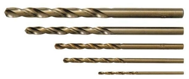 Набор в пластиковом боксе. Цилиндрический хвостовик. Для профессионального использования. Материал: быстрорежущая (HSS) сталь с 5% добавкой кобальта, вышлифованный профиль. Износостойкие. (6 шт.:2-3-4-5-6-8 мм).