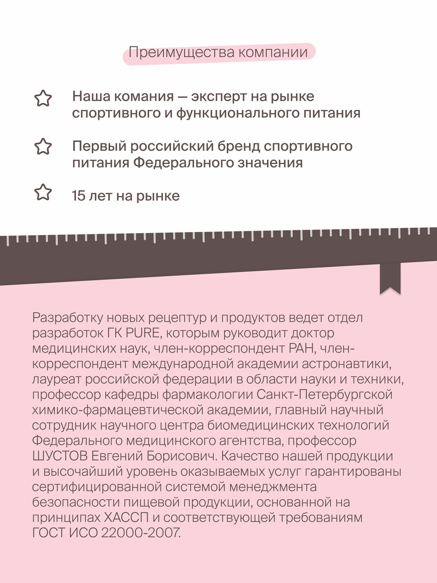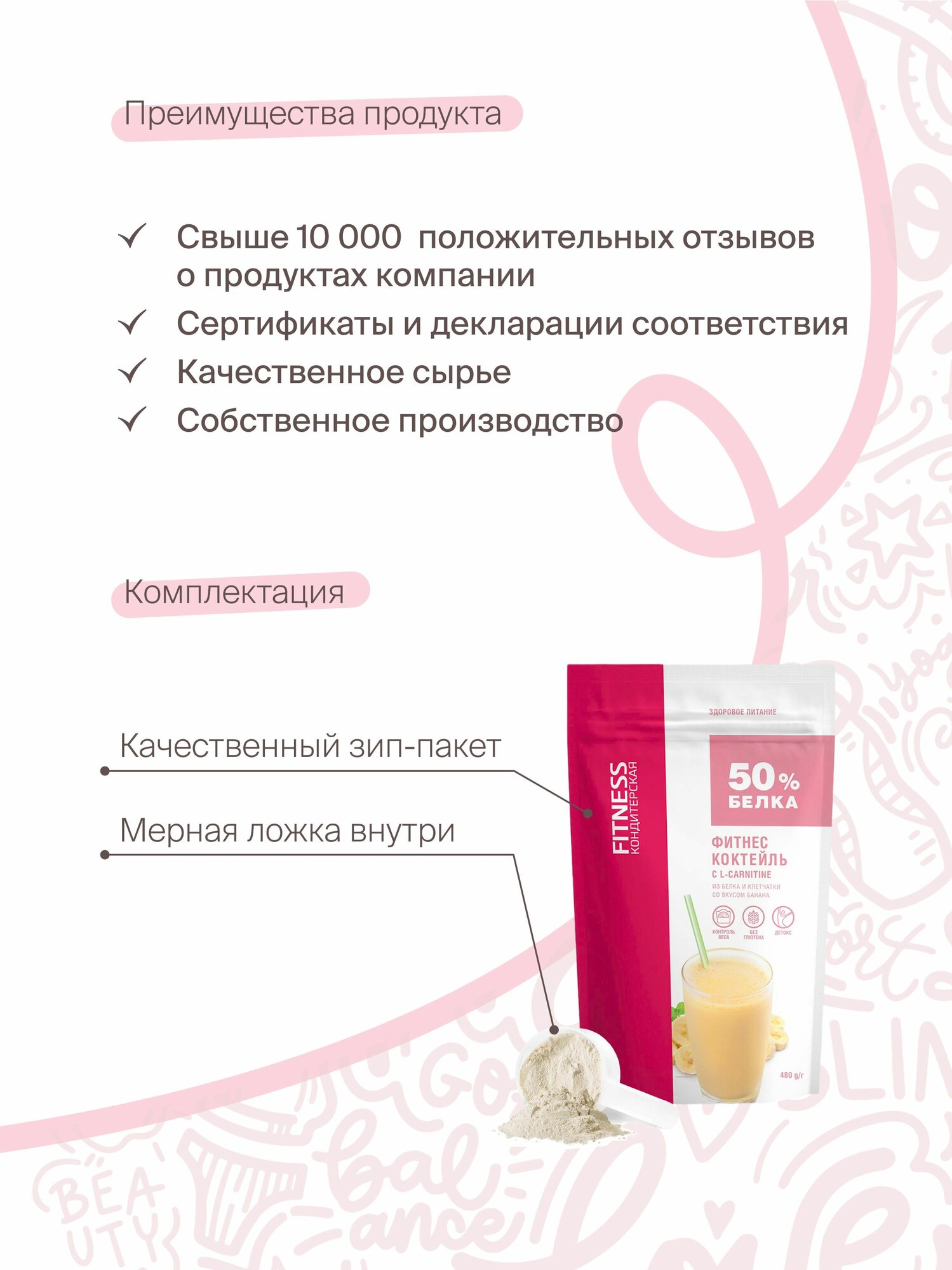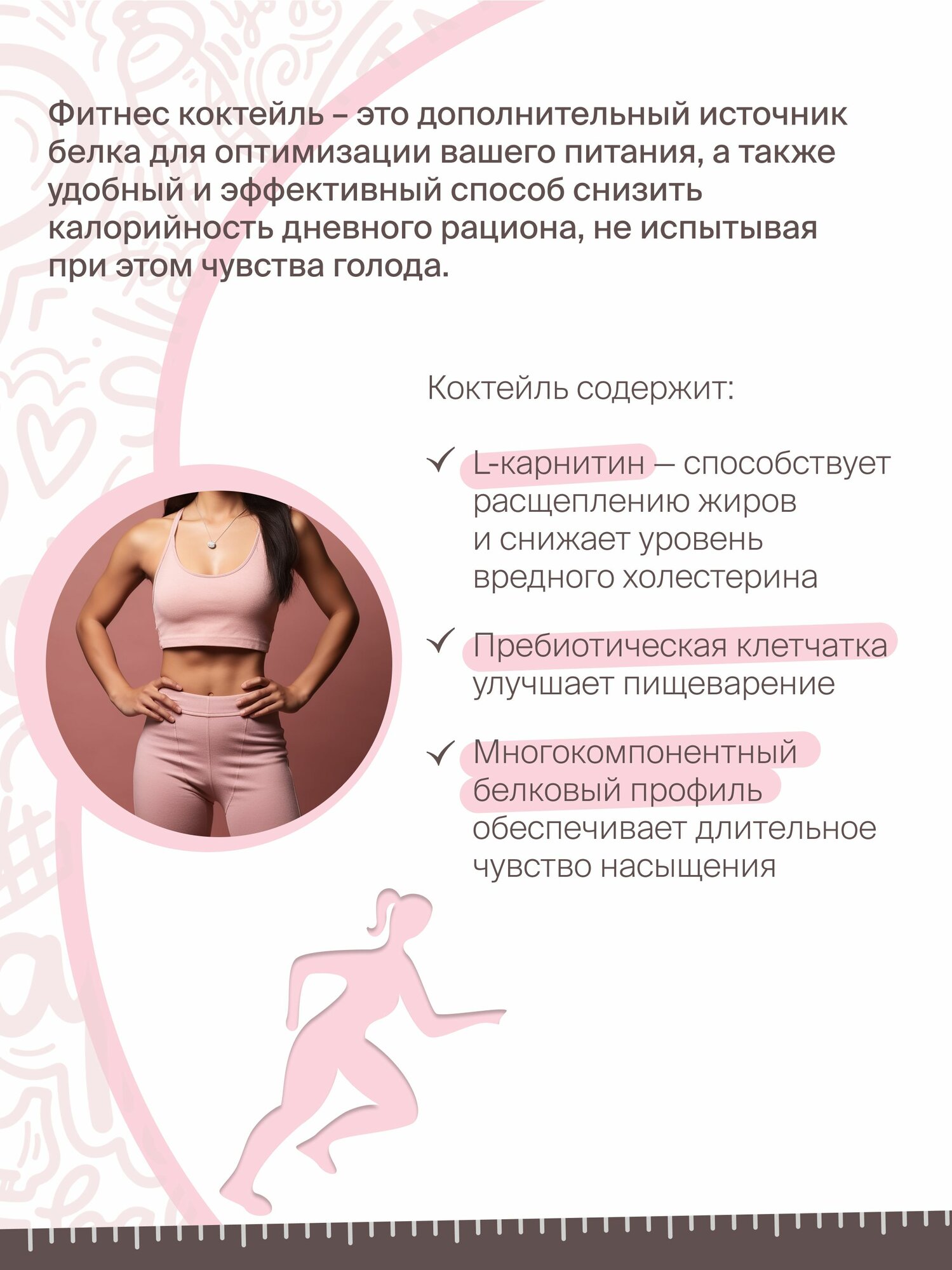 Результат обязательно будет, но для этого нужна помощь опытных профессионалов. ГК PURE десять лет назад первой начала производить в России протеиновые коктейли. Накопленный за годы опыт и результаты новых исследований позволили сделать идеально сбалансированный продукт для похудения: протеиновый фитнес коктейль «Fitness Кондитерская» ! Фитнес коктейль содержит 50% высококачественного белка и пребиотическое волокно, и дополнительно обогащен L-карнитином, который способствует расщеплению жиров и снижает уровень вредного холестерина. А пребиотическое волокно улучшает пищеварение и выводит из организма токсины и шлаки. Фитнес коктейль быстро и надолго обеспечит чувством насыщения и позволит сократить дневное потребление калорий. Фитнес коктейль – это дополнительный источник белка для оптимизации вашего питания, а также удобный и эффективный способ снизить калорийность дневного рациона, не испытывая при этом чувства голода. За счет клетчатки и пребиотического волокна полидекстрозы он способствует нормализации пищеварительных процессов. Дополнительно содержит L-карнитин, который увеличивает транспорт жирных кислот, что существенно способствует жиросжиганию.