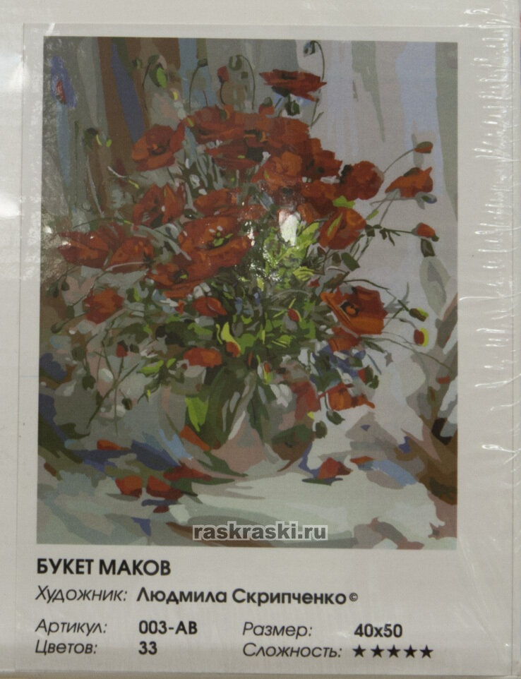 Раскраска по номерам Белоснежка Букет маков 40х50 см 003-AB