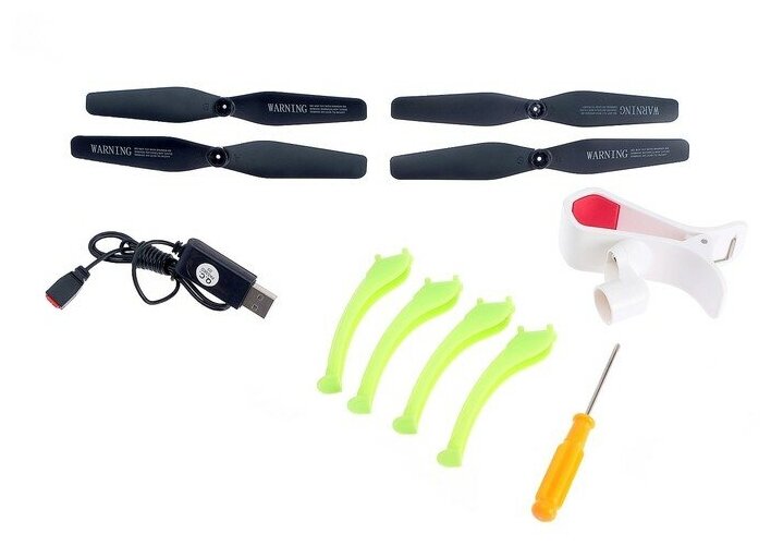 | Комплект поставки | 1 х квадрокоптер 1 х WiFi камера 1 х Картридер 1 х 2.4 ГГц передатчик 1 х Li-Pol аккумулятор 3.7В (600 мАч) 1 х Провод для зарядки от USB 4 х Защиты для лопастей 1 х Комплект запасных пропеллеров 1 х Посадочное шасси 1 х Инструкция |