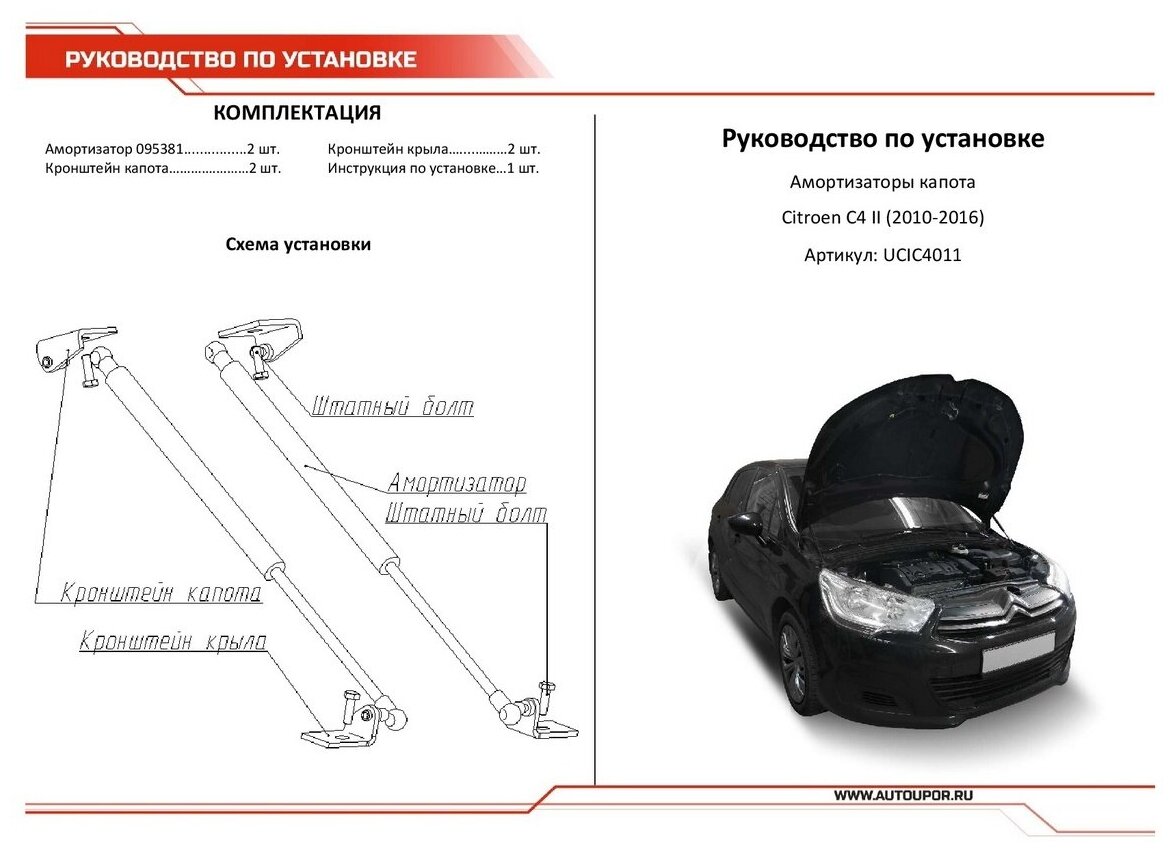 Сервис сравнения цен СкидкаГИД предлагает сравнить цены на товар «Упоры капота Автоупор Citroen C4 V 2011- 2 шт. UCIC4011»