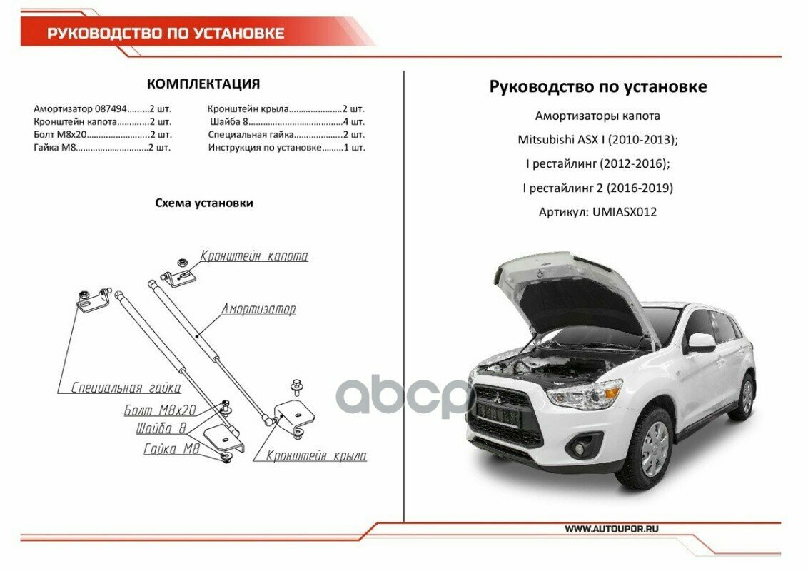 Упоры капота Автоупор Mitsubishi ASX V 2010- 2 шт. UMIASX012