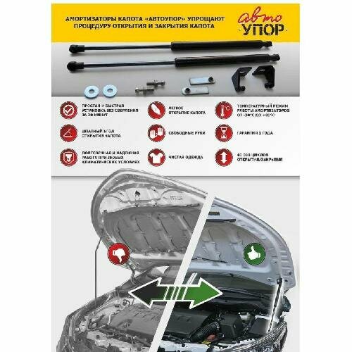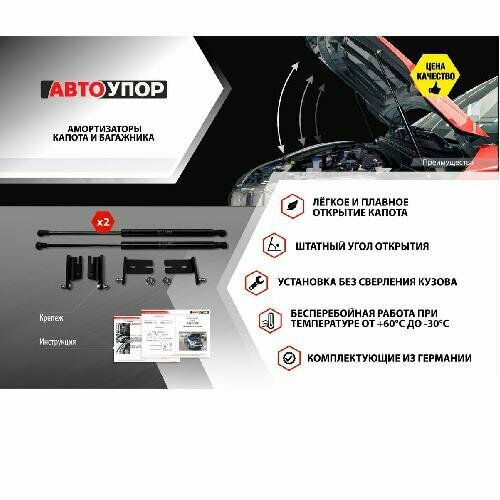 Обращаем Ваше внимание, что упоры капота имеют форму и комплектацию крепления, соответствующую модели данного автомобиля и могут отличать от фотографии карточки товара. Фото служит для визуального восприятия товара.
