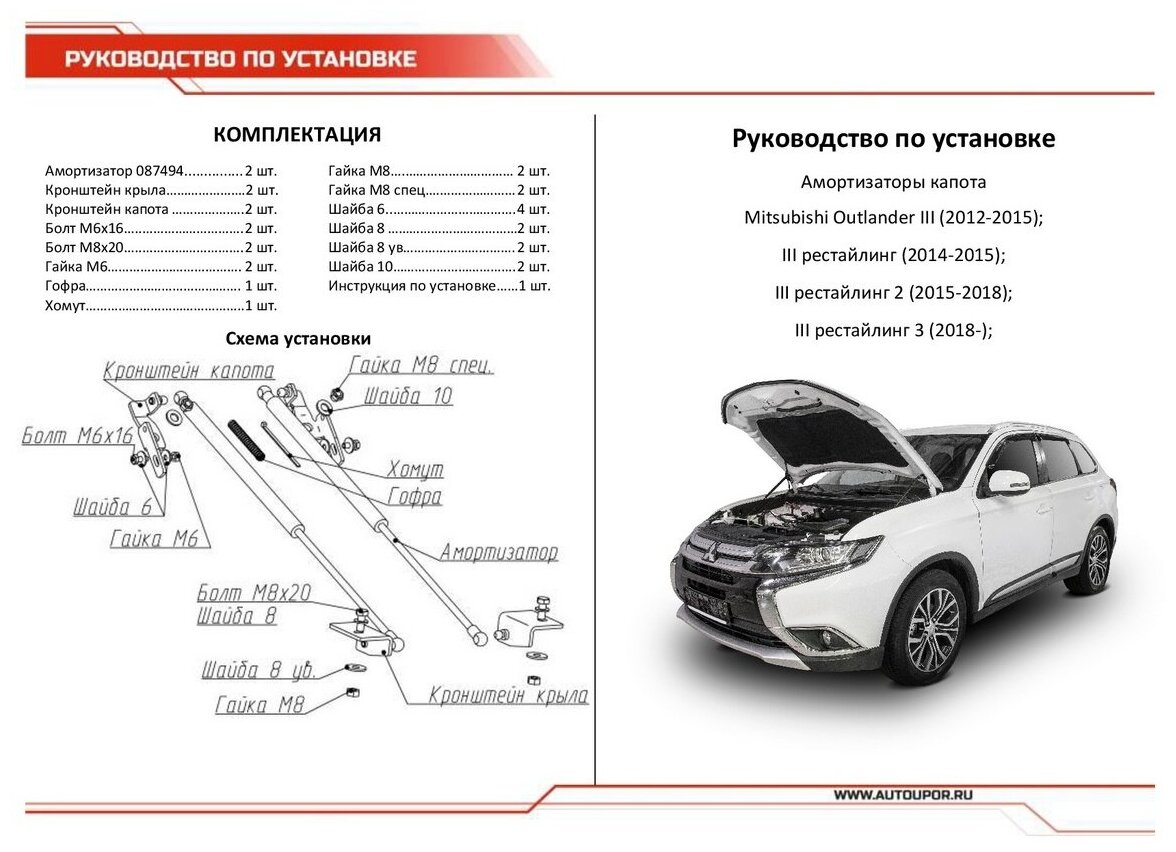 Сервис сравнения цен СкидкаГИД предлагает сравнить цены на товар «Упоры капота Автоупор Mitsubishi Outlander V 2012- 2 шт. UMIOUT021»