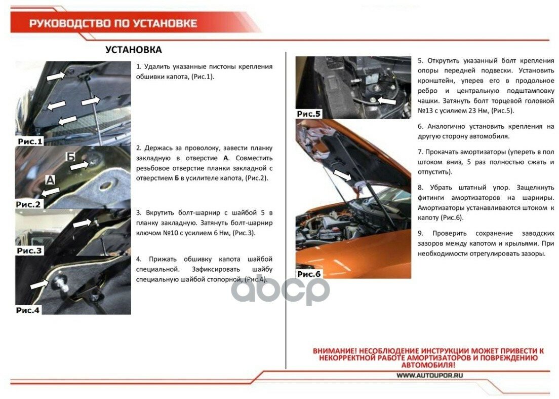 Обращаем Ваше внимание, что упоры капота имеют форму и комплектацию крепления, соответствующую модели данного автомобиля и могут отличать от фотографии карточки товара. Фото служит для визуального восприятия товара.