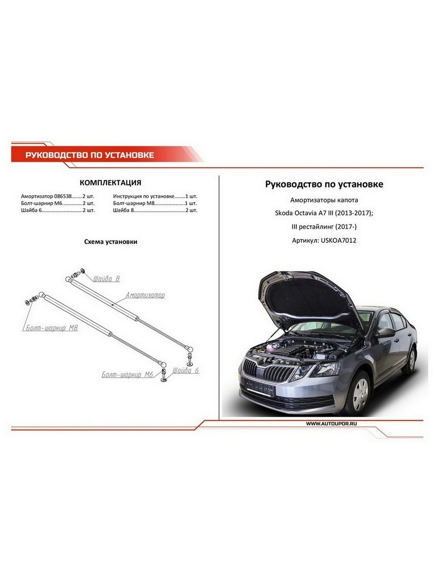 Тип товара: Упоры капота для Skoda Octavia III A7 2013-н.в.