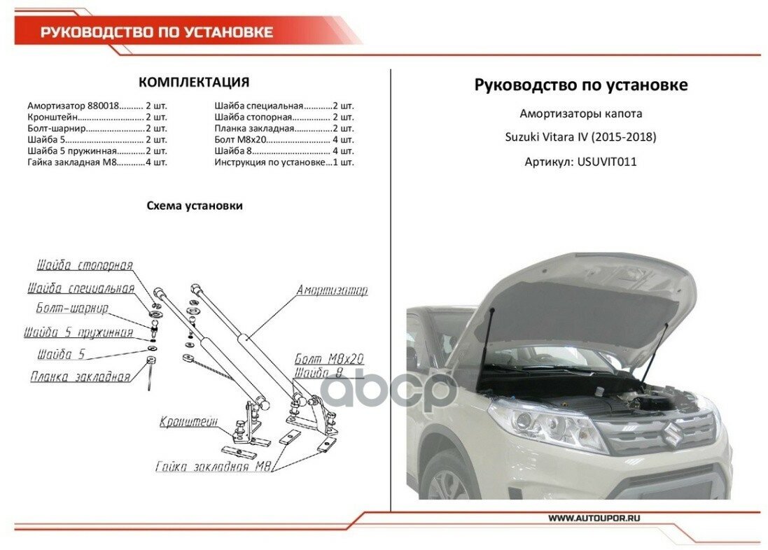 Сервис сравнения цен СкидкаГИД предлагает сравнить цены на товар «Упоры капота Автоупор Suzuki Vitara V 2015- 2 шт. USUVIT011»