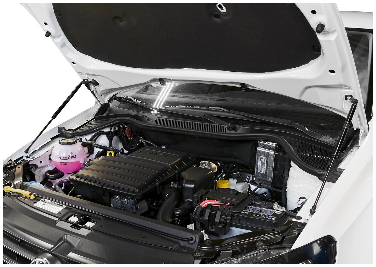 Газовые упоры капота позволяют легко открыть капот одним движением руки и автоматически зафиксировать его в верхнем положении.