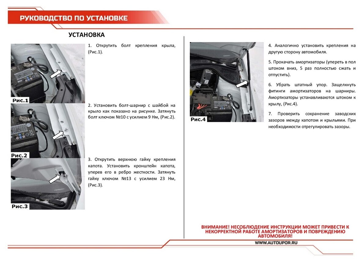 - Сохранение штатного угла открытия капота.