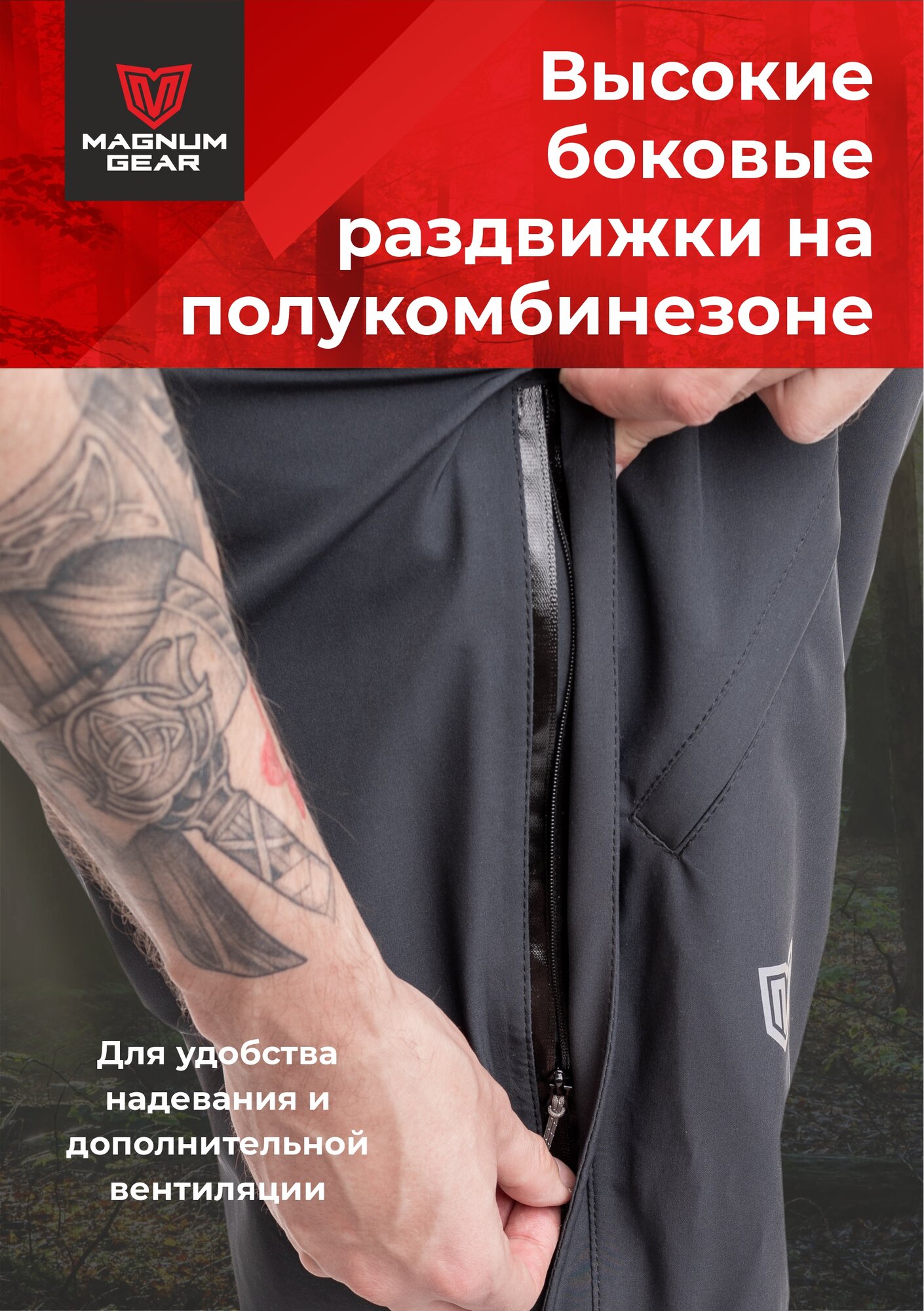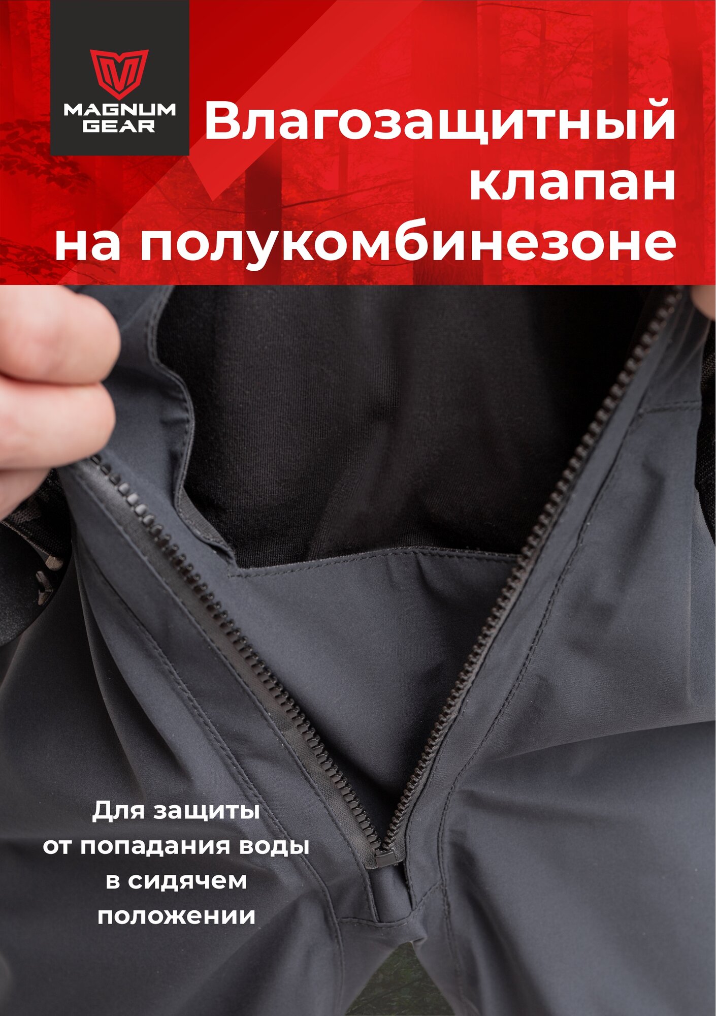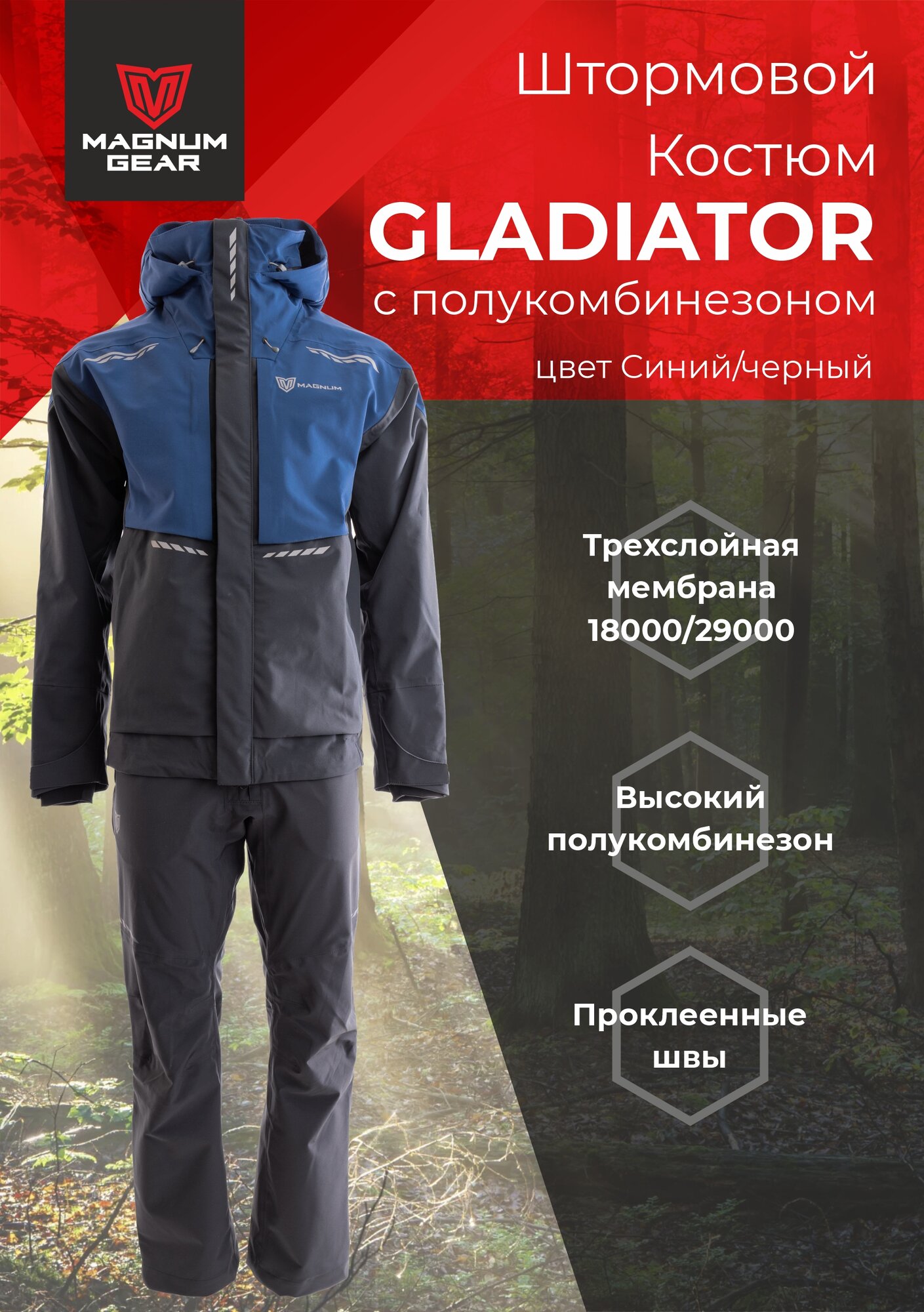 Штормовой костюм GLADIATOR – мощное сочетание продуманного функционального дизайна и высококачественных материалов. Максимальная защита от дождя и ветра при рыбалке с катера или при езде на мототехнике. Костюм выполнен с высоким полукомбинезоном для защиты от ветра. Высокий штормовой воротник и влагозащитные манжеты препятствуют попаданию воды внутрь костюма. Двойная ветрозащитная планка на магнитах. Комплект выполнен из эластичной трехслойной мембранной ткани с долговечной DWR обработкой. Полностью проклеенные швы. Полукомбинезон снабжен высокими влагозащитными молниями по бокам для удобства надевания. Также молнии можно использовать как вентиляцию в случае, если после поклевки трофейной рыбы стало очень жарко. — артикулированный крой — герметизация швов — центральная застежка на тракторной молнии, с двойной ветрозащитной планкой — капюшон с регулировкой по объему, по лицевому краю — карманы куртки: 2 нагрудных, закрытых на молнии; 2 нижних, закрытых, с боковым входом, на молнии; 1 внутренний на молнии — регулировка по низу рукавов на пату и велкро — внутренний влагозащитный манжет рукавов из материала Triplex — внутренняя регулировка по низу куртки — высокий ПК — карманы ПК: 2 нагрудных, закрытых на молнии; 2 прорезных на молнии, закрыты планками — высокая боковая раздвижка ПК, на молнии — съемный пояс с креплением на пряжку-фастекс — высокая спинка ПК из эластичного материала Triplex — магнитная фурнитура, влагозащитные молнии, полукольцо D-Ring для крепления аксессуаров, светоотражающий кант