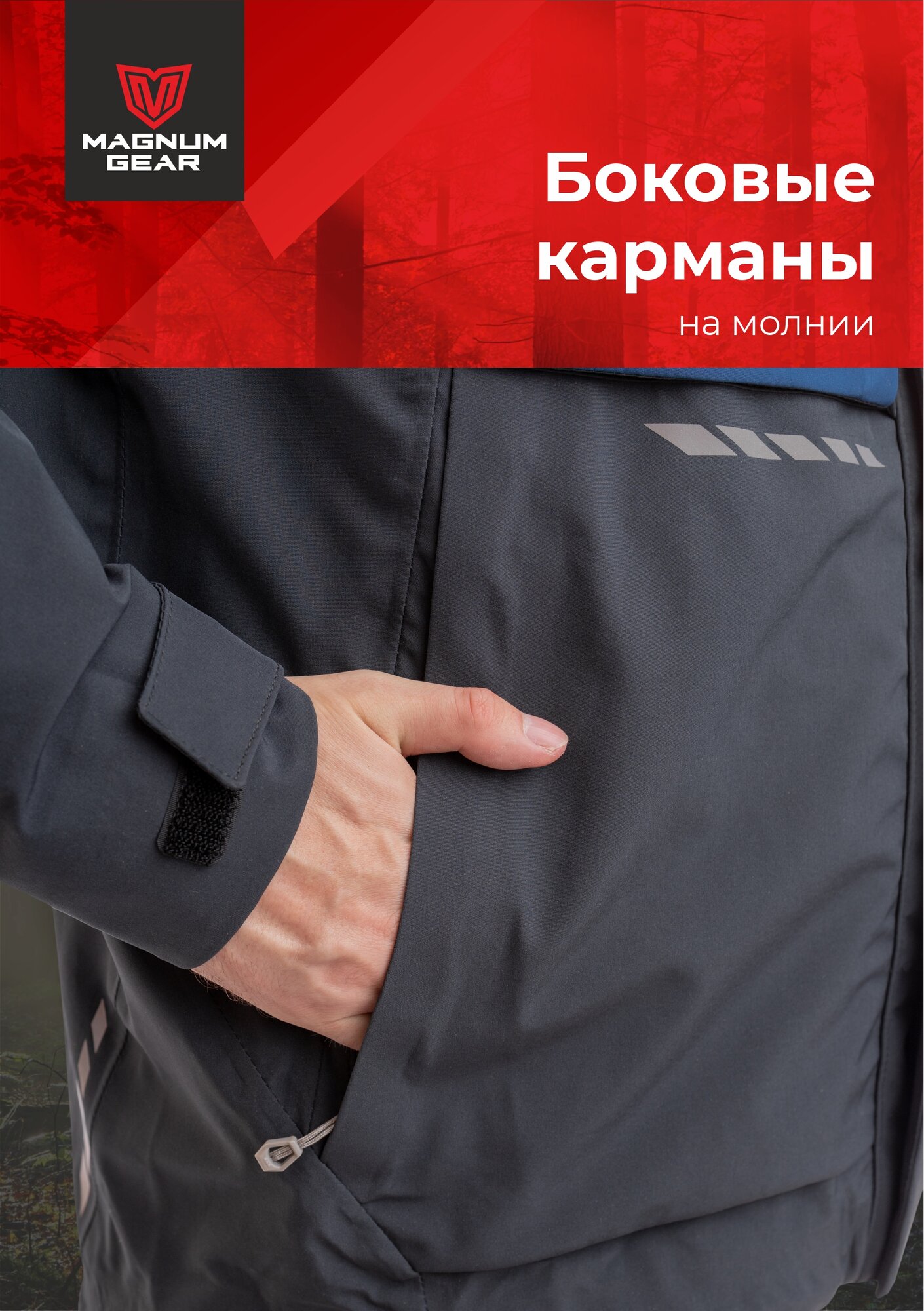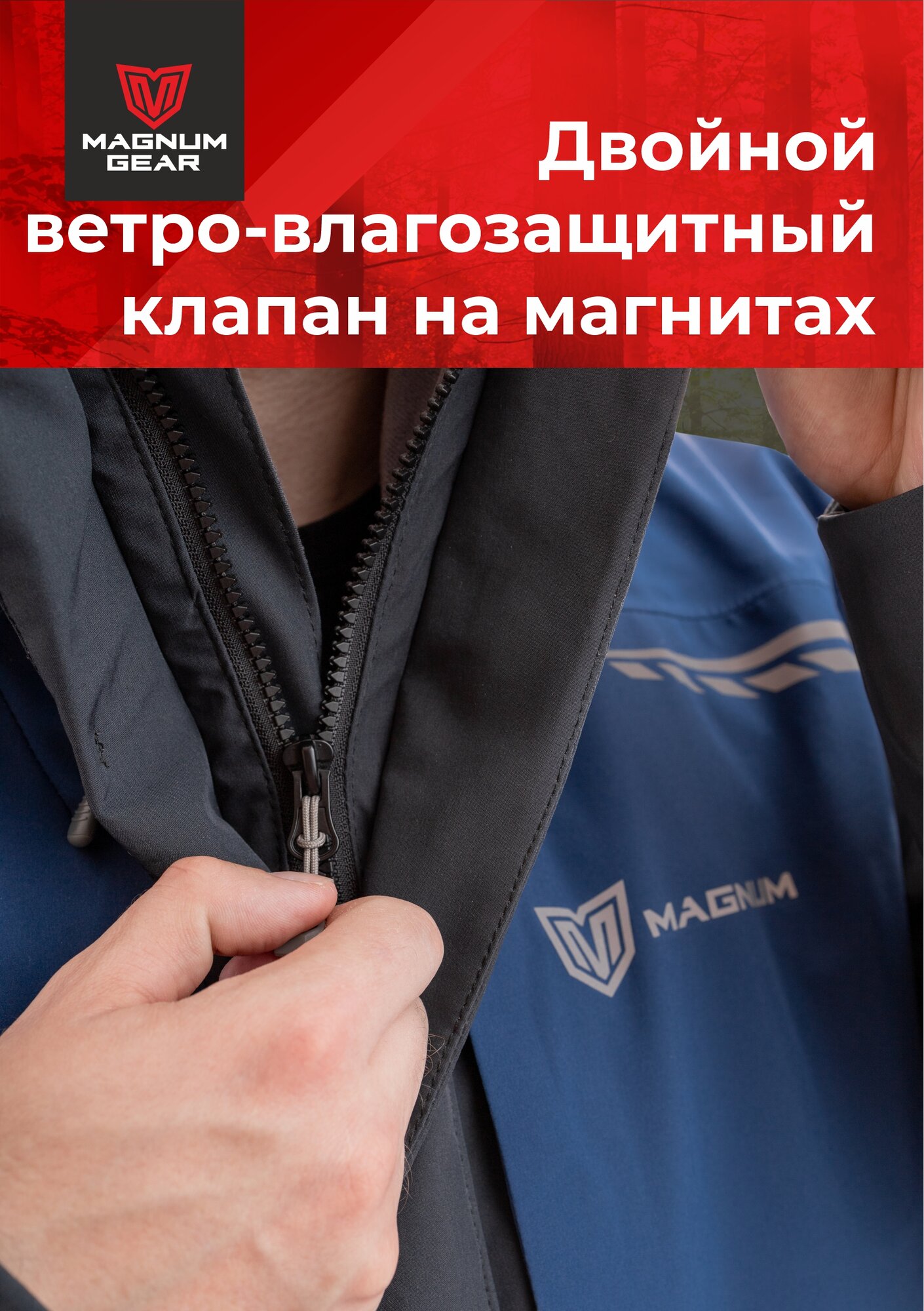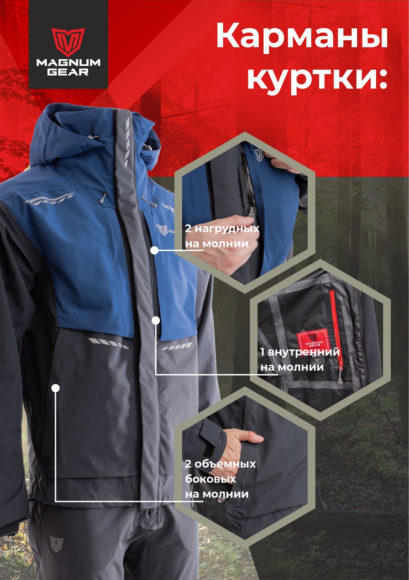 Штормовой костюм GLADIATOR – мощное сочетание продуманного функционального дизайна и высококачественных материалов. Максимальная защита от дождя и ветра при рыбалке с катера или при езде на мототехнике. Костюм выполнен с высоким полукомбинезоном для защиты от ветра. Высокий штормовой воротник и влагозащитные манжеты препятствуют попаданию воды внутрь костюма. Двойная ветрозащитная планка на магнитах. Комплект выполнен из эластичной трехслойной мембранной ткани с долговечной DWR обработкой. Полностью проклеенные швы. Полукомбинезон снабжен высокими влагозащитными молниями по бокам для удобства надевания. Также молнии можно использовать как вентиляцию в случае, если после поклевки трофейной рыбы стало очень жарко. — артикулированный крой — герметизация швов — центральная застежка на тракторной молнии, с двойной ветрозащитной планкой — капюшон с регулировкой по объему, по лицевому краю — карманы куртки: 2 нагрудных, закрытых на молнии; 2 нижних, закрытых, с боковым входом, на молнии; 1 внутренний на молнии — регулировка по низу рукавов на пату и велкро — внутренний влагозащитный манжет рукавов из материала Triplex — внутренняя регулировка по низу куртки — высокий ПК — карманы ПК: 2 нагрудных, закрытых на молнии; 2 прорезных на молнии, закрыты планками — высокая боковая раздвижка ПК, на молнии — съемный пояс с креплением на пряжку-фастекс — высокая спинка ПК из эластичного материала Triplex — магнитная фурнитура, влагозащитные молнии, полукольцо D-Ring для крепления аксессуаров, светоотражающий кант