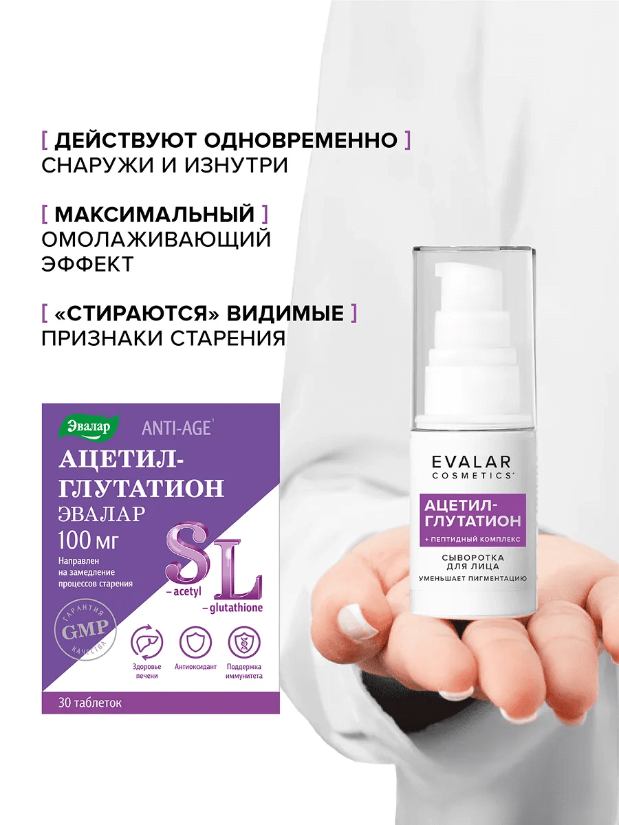 Сыворотка для лица ацетил-глутатион Cosmetics Эвалар фл. 30мл (2196162)
