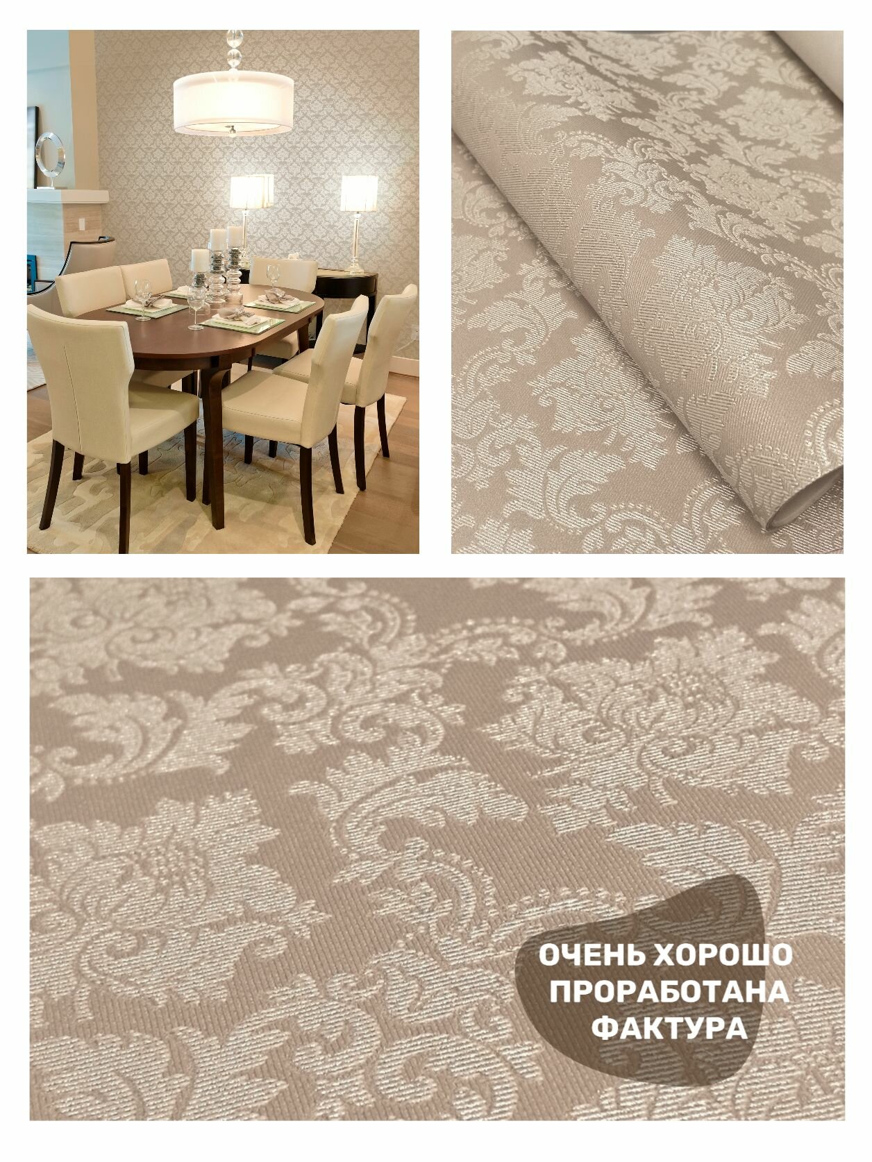 - **Дизайнерский стиль.** Обои имеют стильный и элегантный дизайн с вензелями, который подойдёт для любого интерьера.