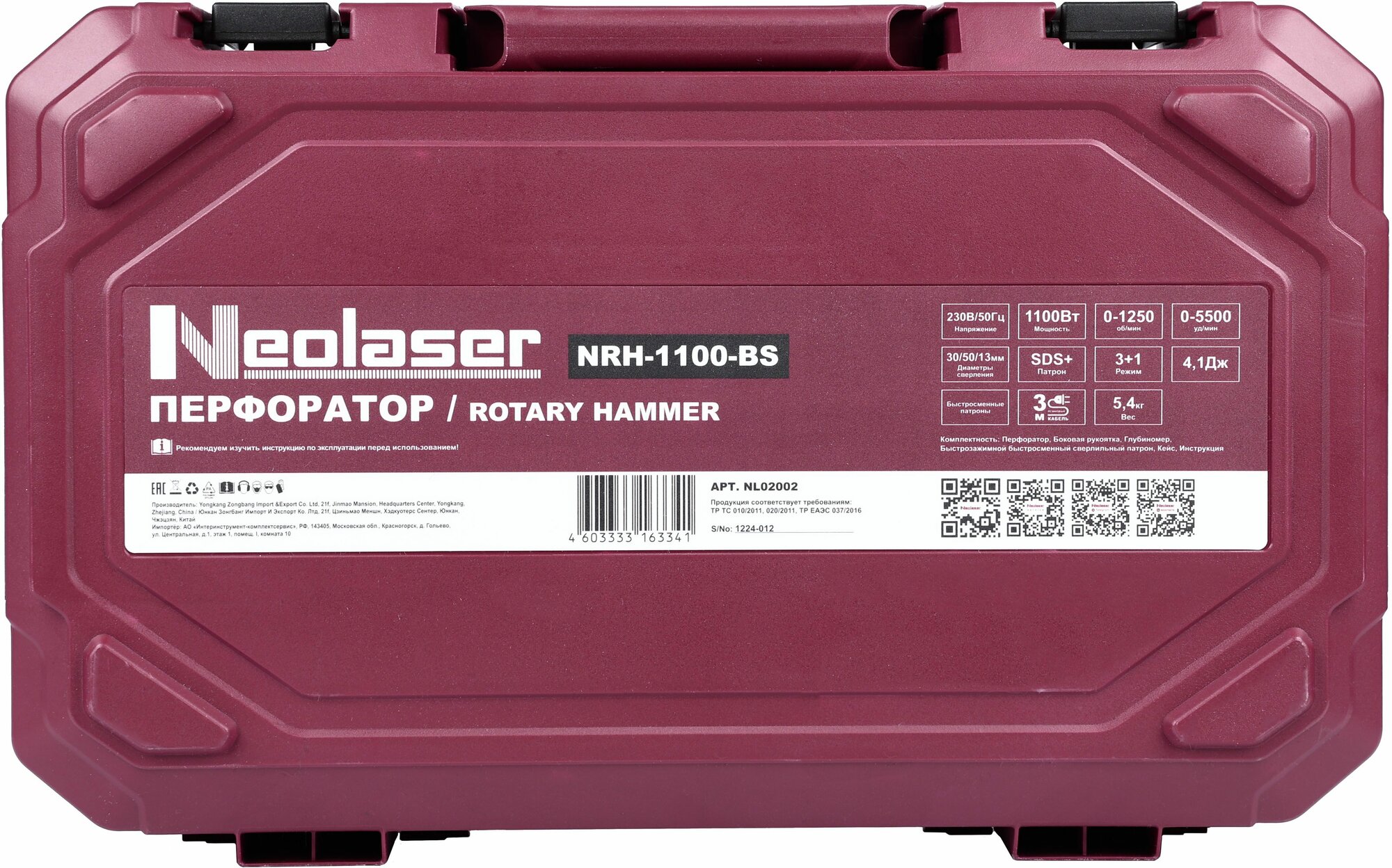 Перфоратор сетевой SDS-plus Neolaser NRH-1100-BS 1100 Вт 4.1 Дж
