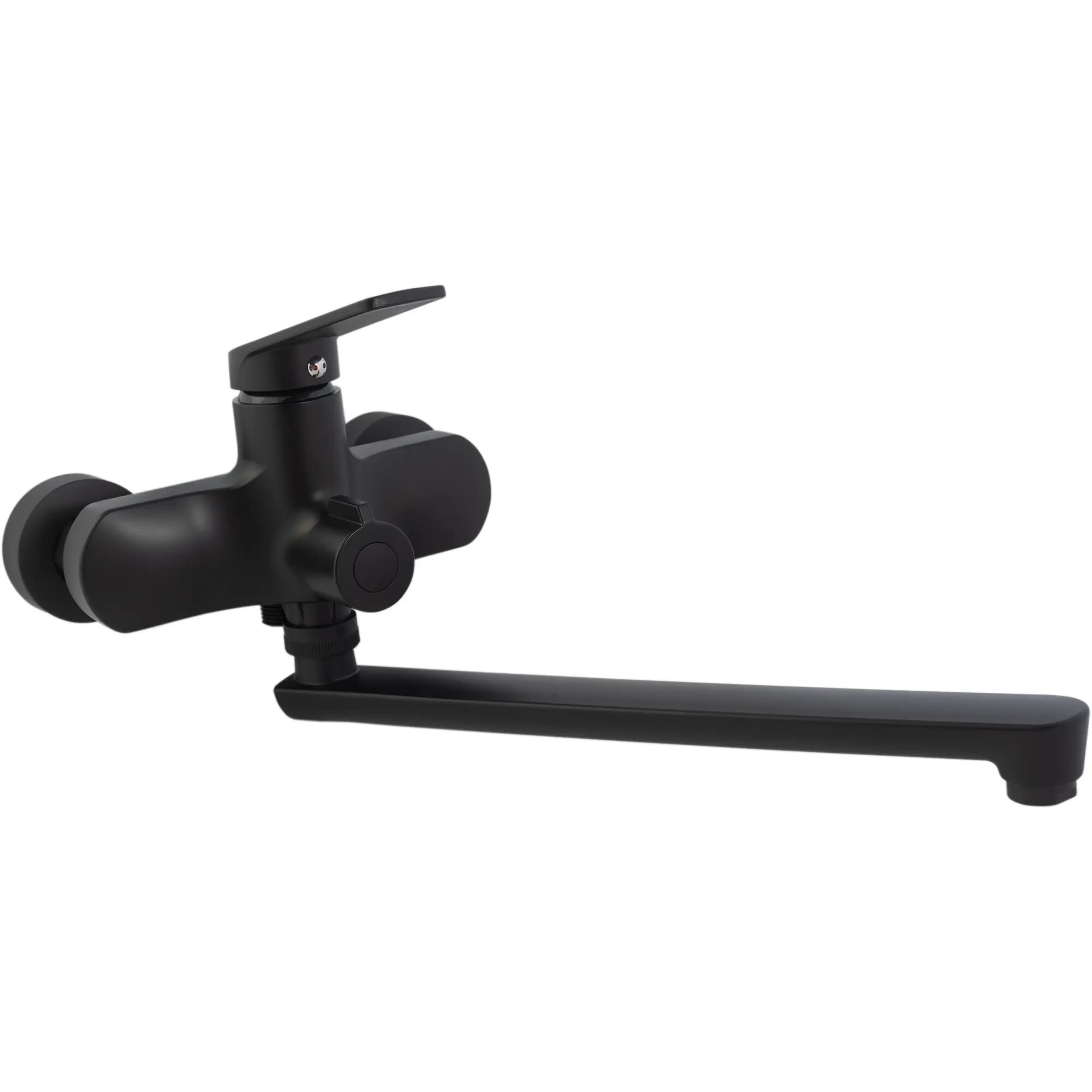 - смеситель рассчитан на настенную установку, что экономит пространство и упрощает уборку в зоне ванны.